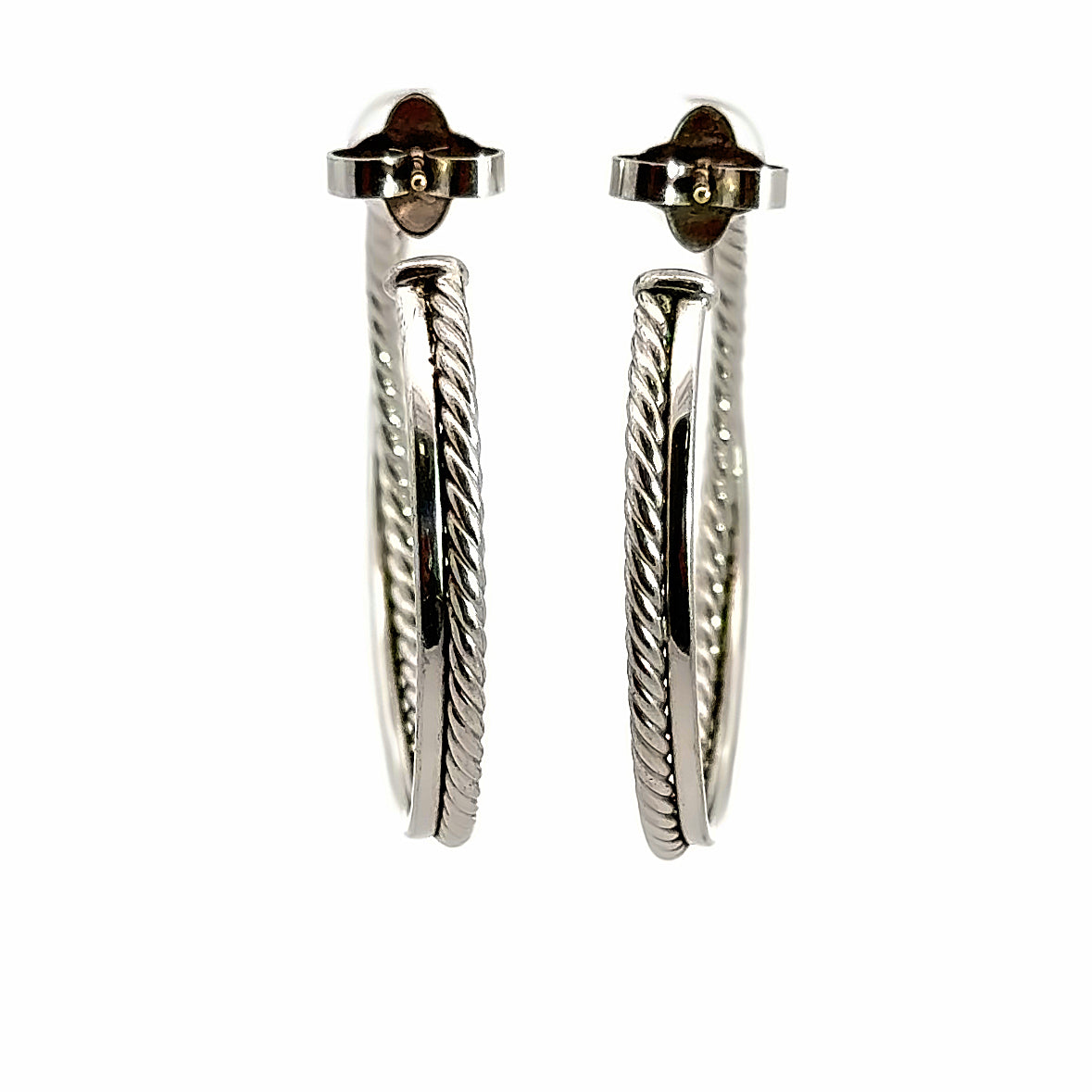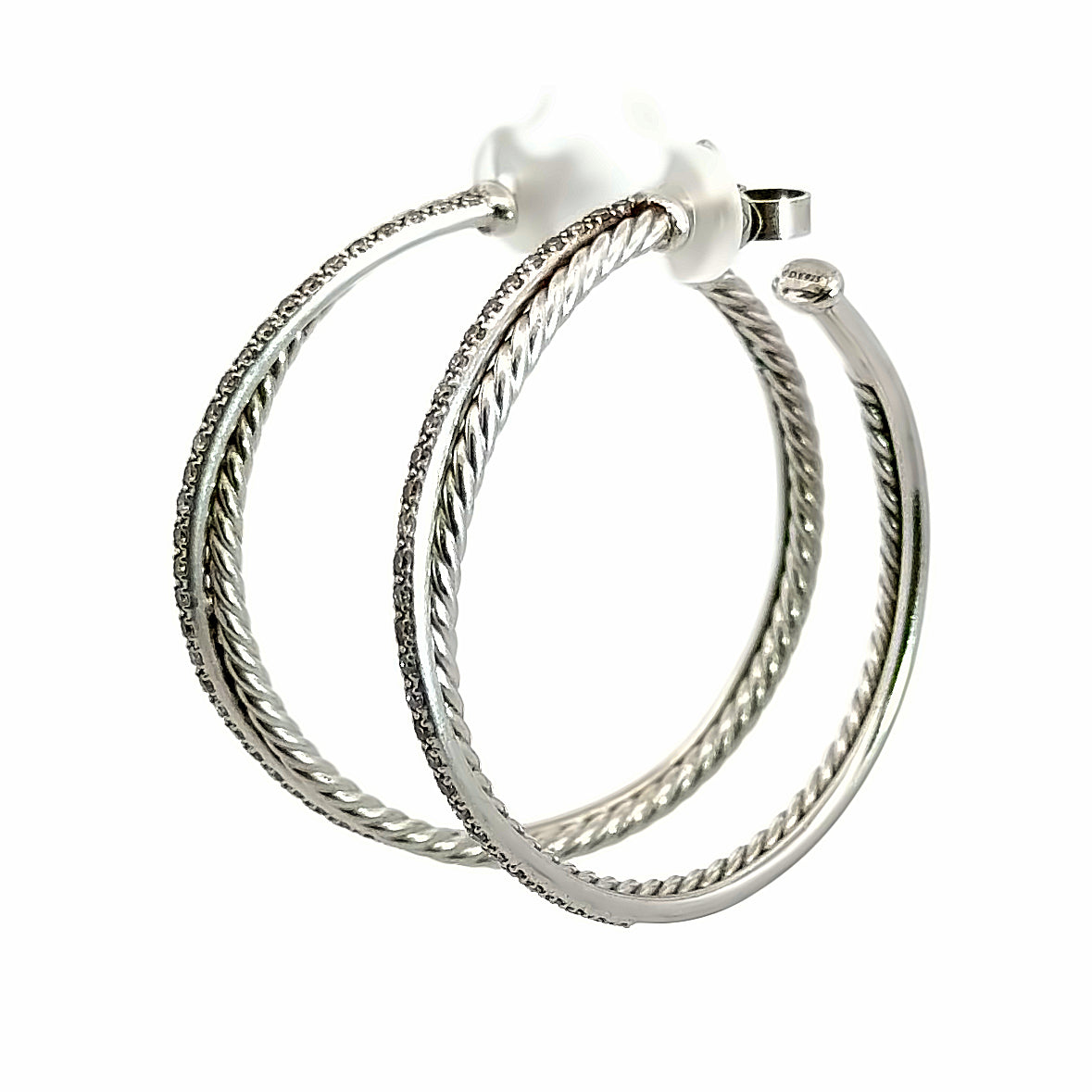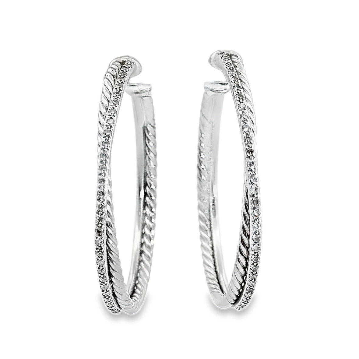 David Yurman Sterling Silver & Diamond Crossover Large Hoop Earrings