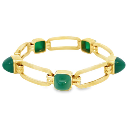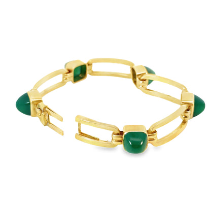 Vintage 18K Yellow Gold & Green Jade Link Bracelet