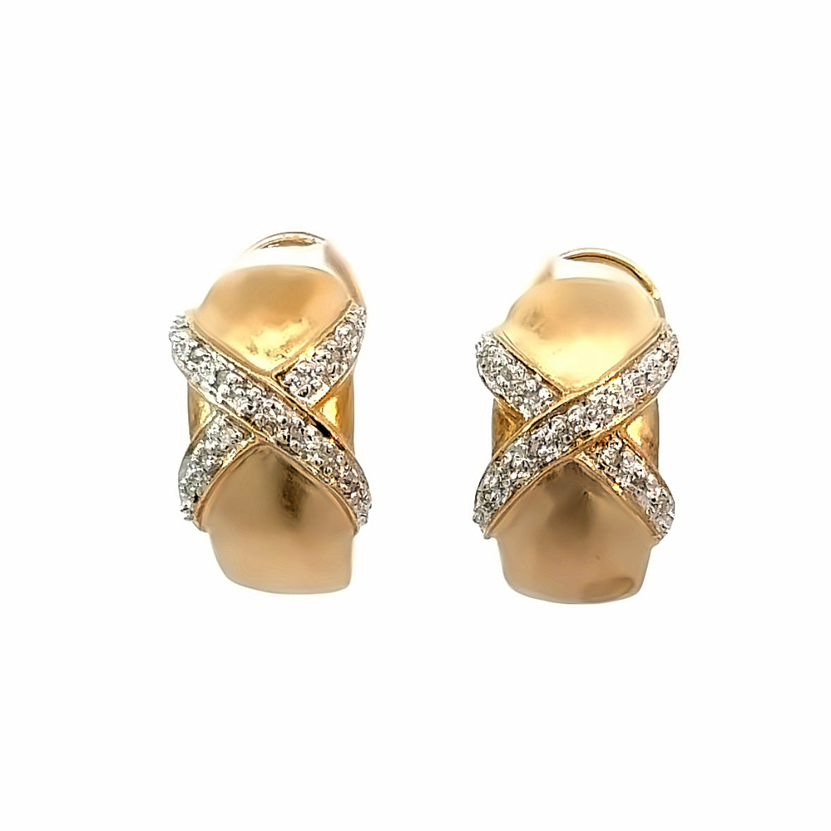 If you are looking for a classic hoop but elevated to the next level these might be just the right earrings for you! These 14K gold hoop earrings feature a crisscross diamond accent that gives that extra flair and sparkle, creating a beautiful eye-catching look.