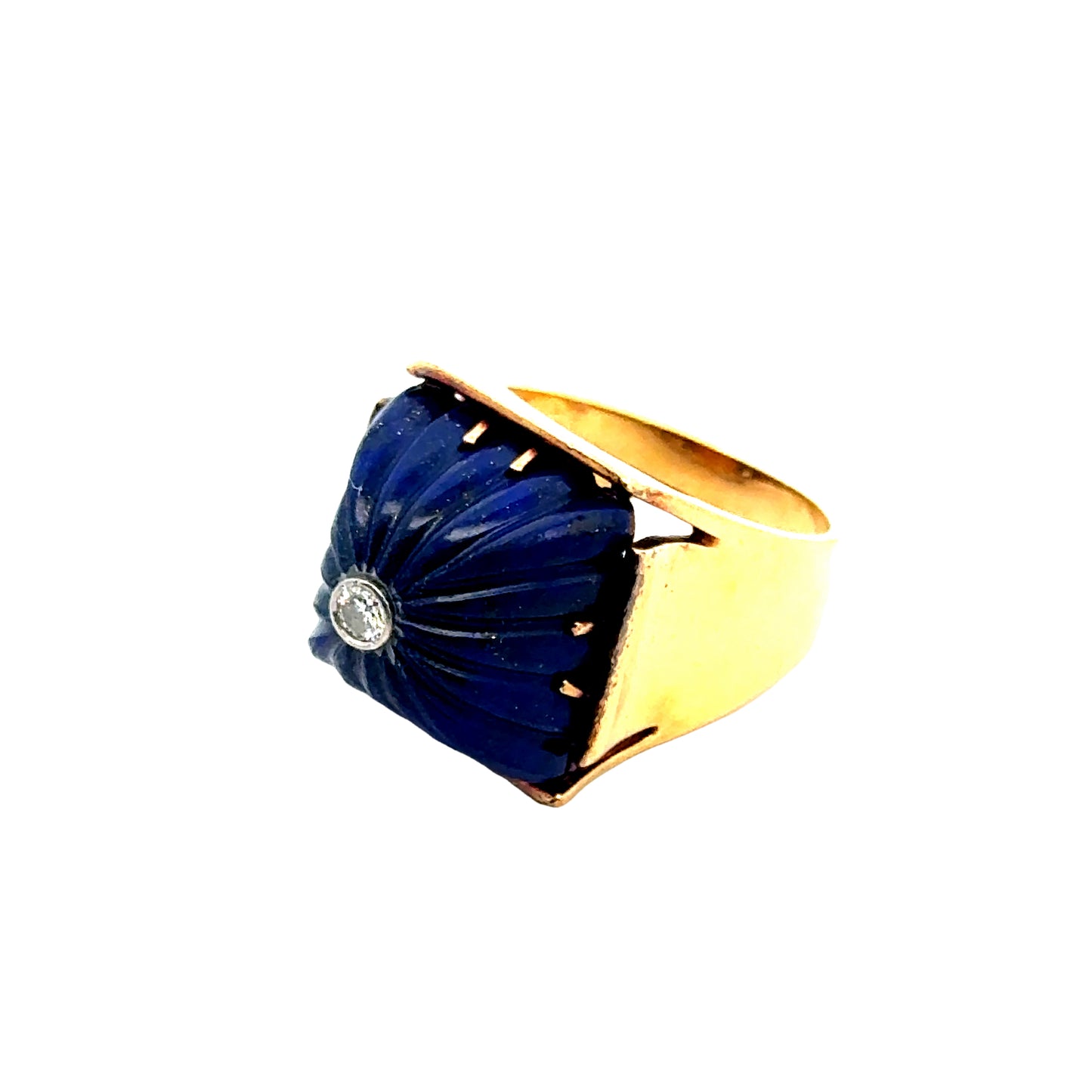 Estate 18K Yellow Gold Lapis Lazuli & Diamond Ring