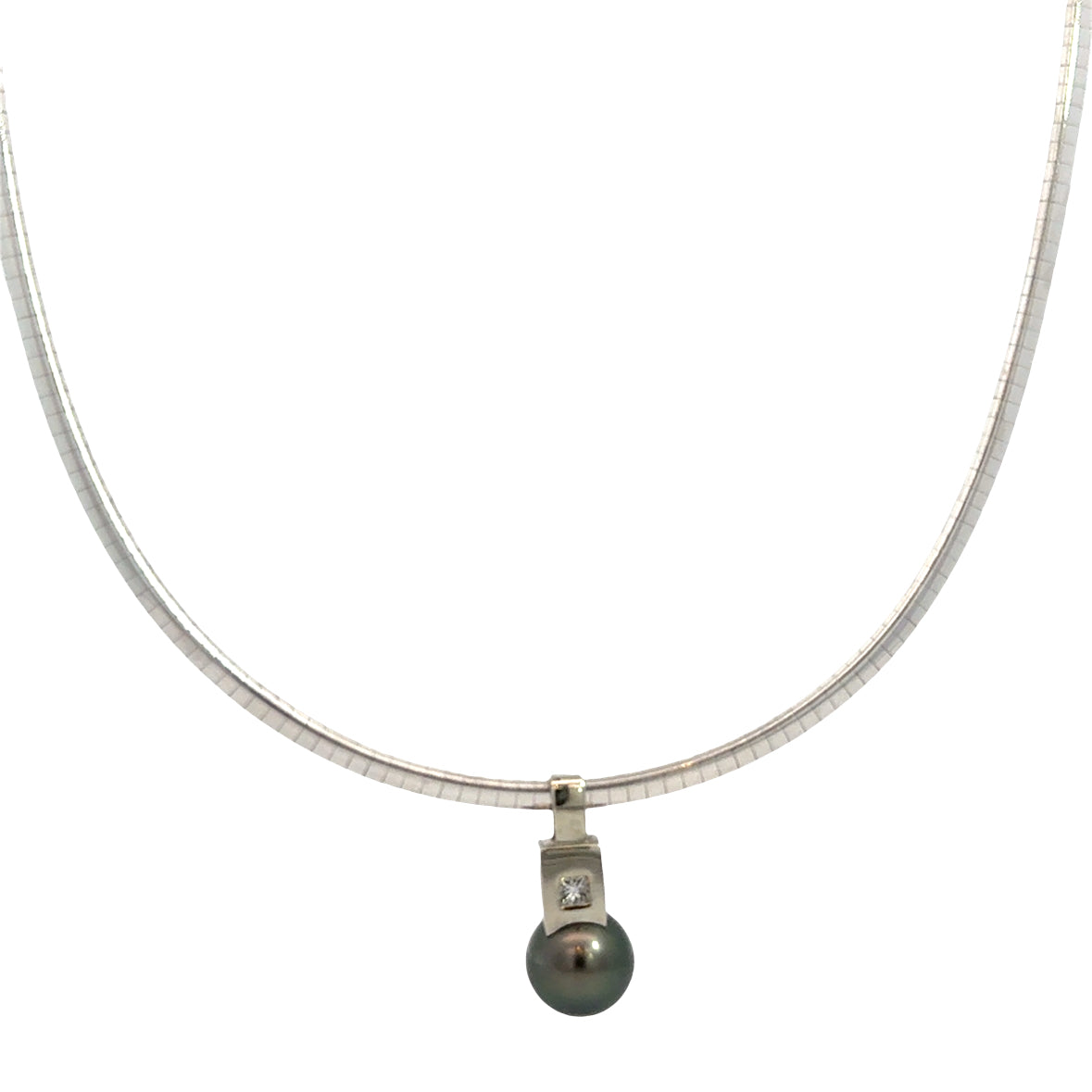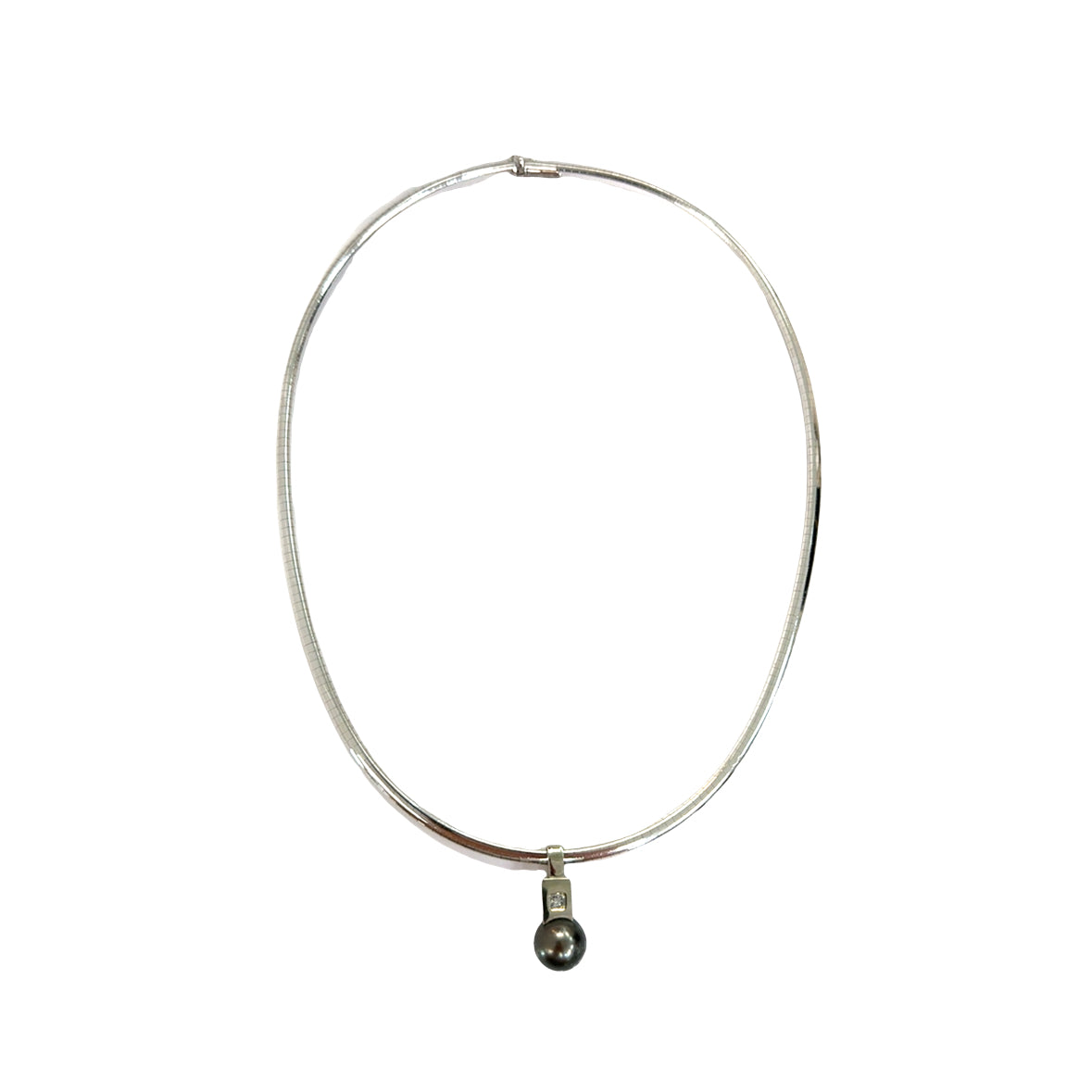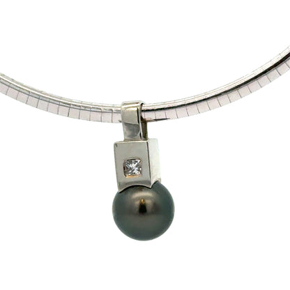 18K White Gold Omega Necklace with Tahitian Pearl & Diamond Pendant
