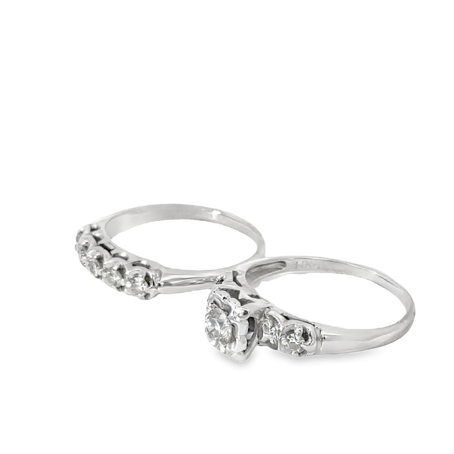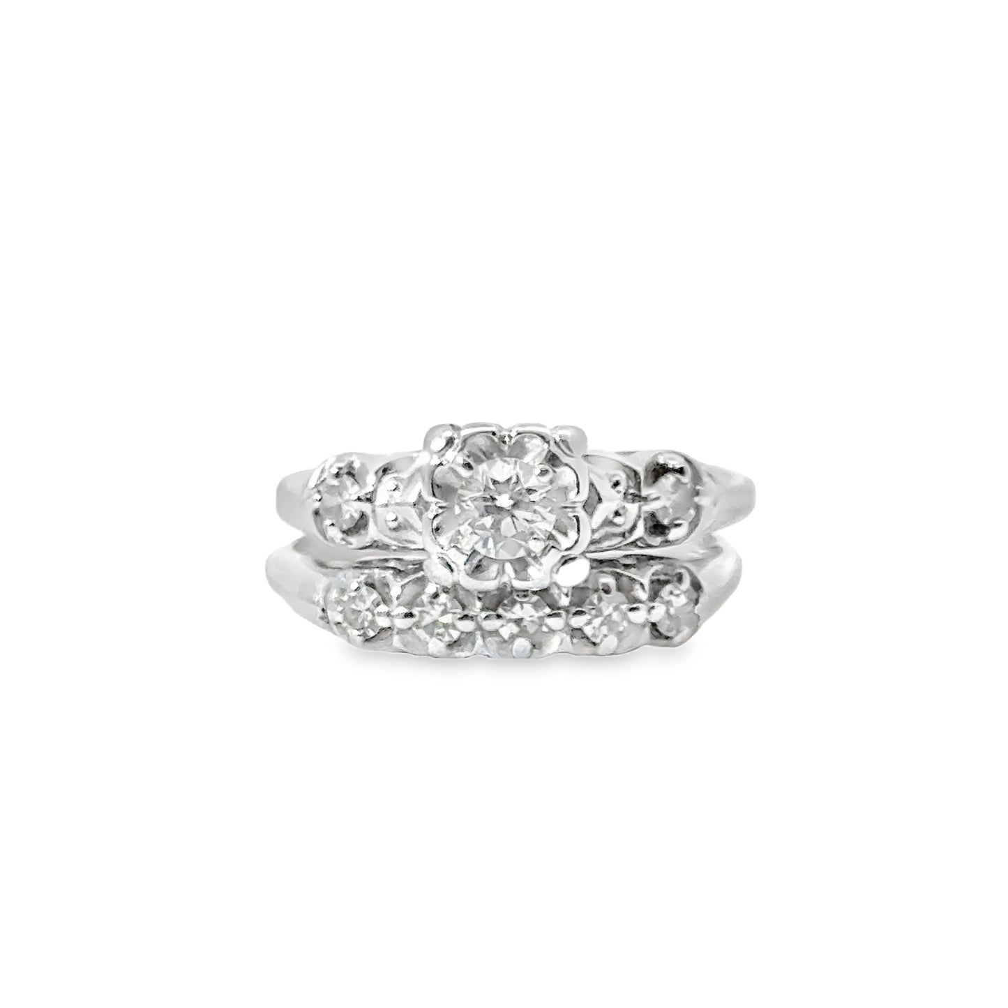 Gorgeous 14K White Gold Diamond Engagement Ring & Wedding Band