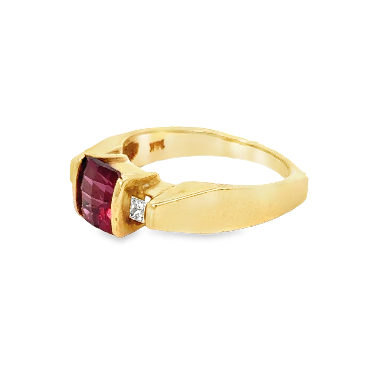 14K Yellow Gold, Square-Cut Garnet 6x6mm, Square-Cut Diamonds Approx.0.10ct., Size 3 3/4 |
