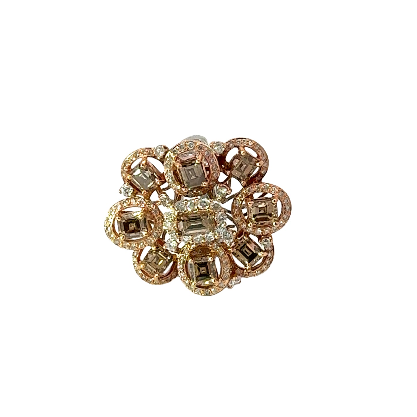 Gorgeous 18K White Gold & Rose Gold Cluster Diamond Ring