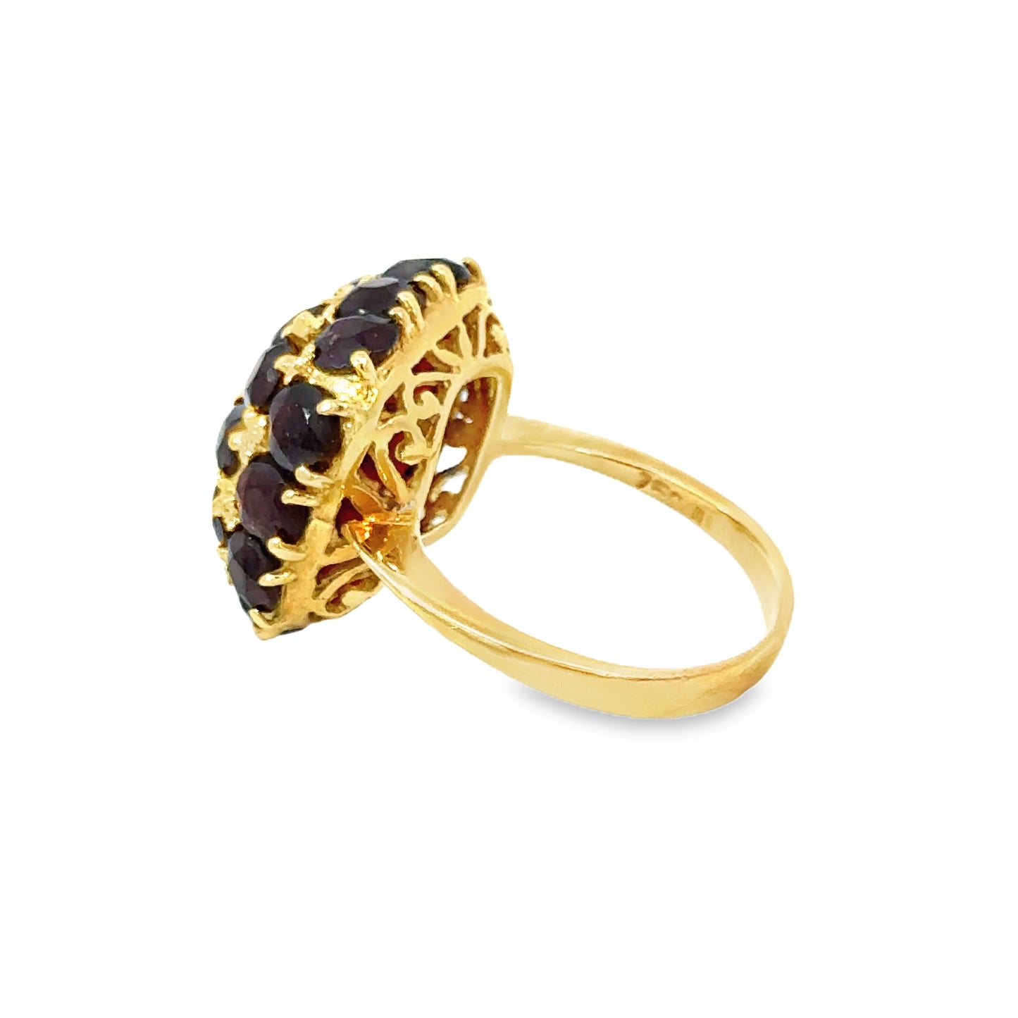 Stunning 18K Yellow Gold Round-Cut Garnet Cluster Ring
