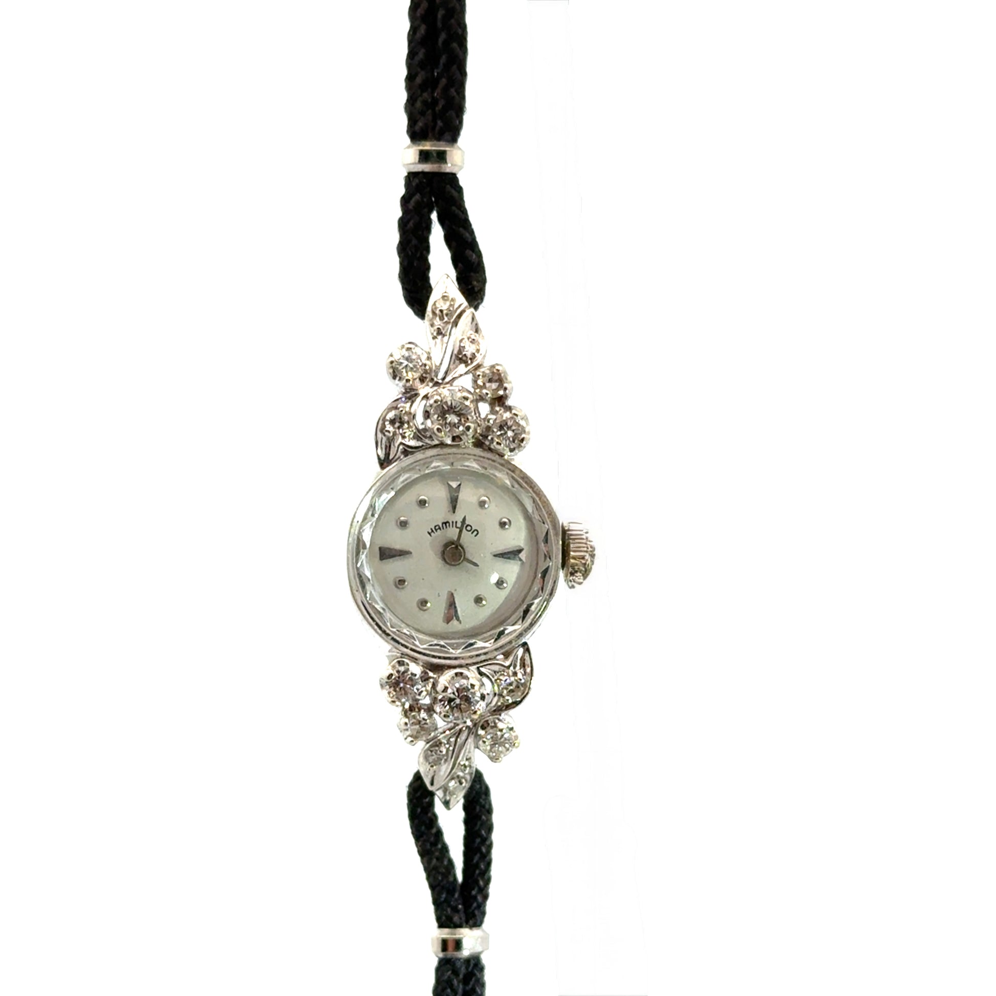 Hamilton, founded in 1892 in Lancaster, Pennsylvania, became one of the most respected American watchmakers, especially admired for its precision hand-wound movements during the early 20th century. Ladies’ diamond cocktail watches like this one were highly fashionable in the late 1920s, worn as jewelry as much as timepieces—symbolizing elegance, femininity, and modern style.