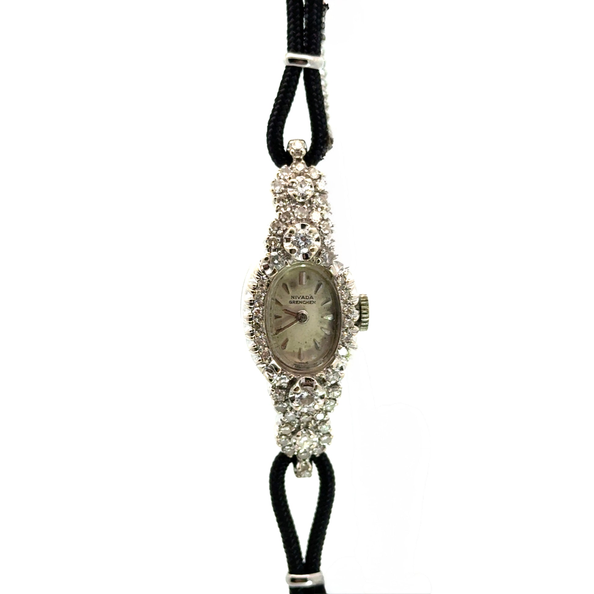 Vintage 1920s Nivada Grenchen Diamond Cocktail Watch – 14K White Gold