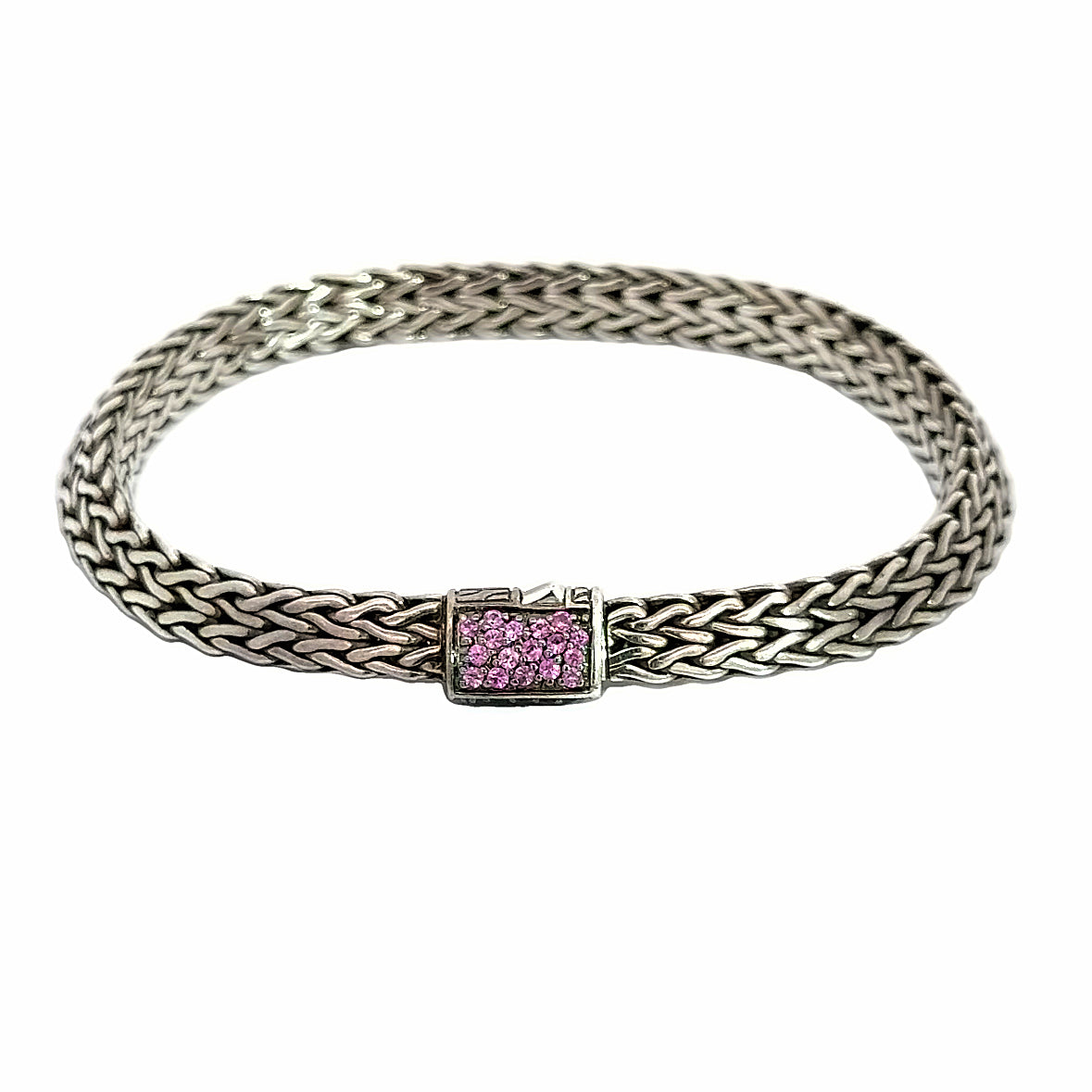 John Hardy, Silver, Pink Tourmaline, Black Sapphire, 8 inches, Pusher Clasp |