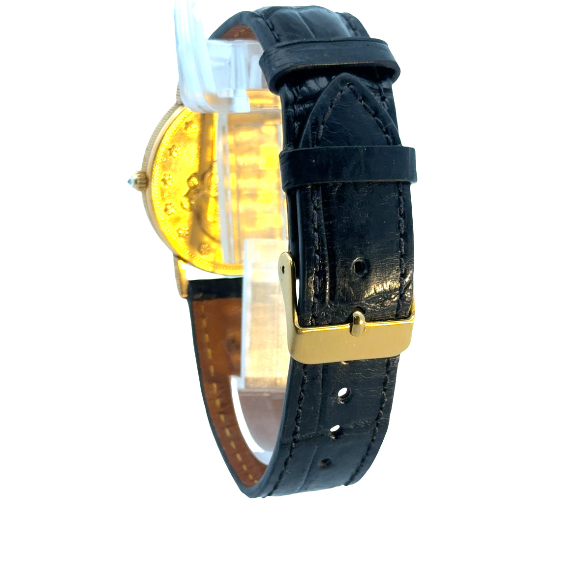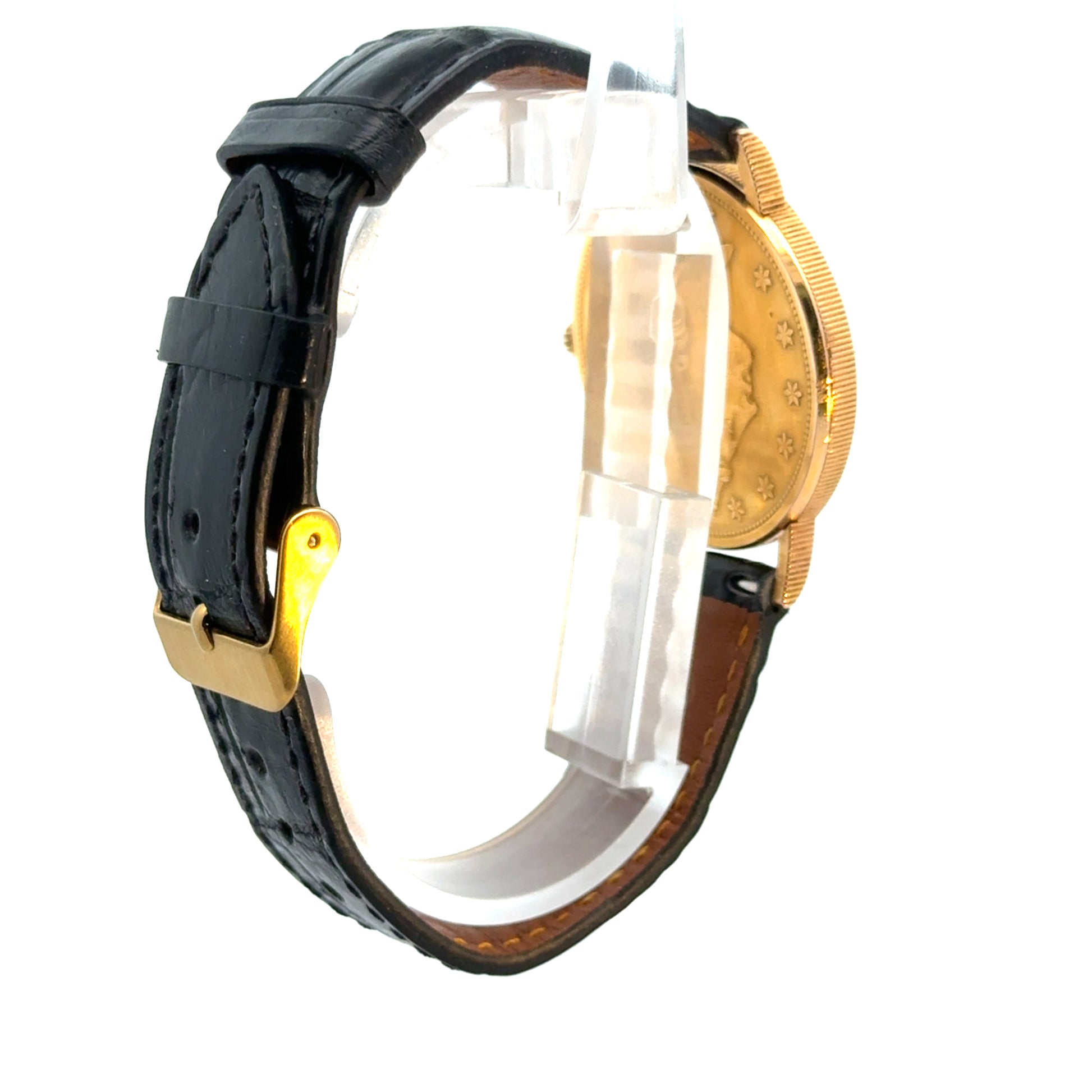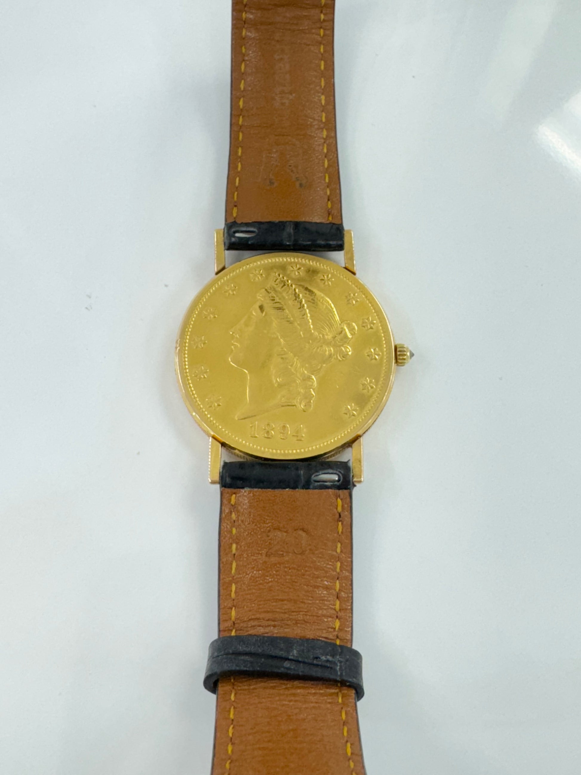 Corum $20 Gold piece (22K gold), case 18k gold, quartz movement, 35mm, coin-22K, black alligator strap, original box |