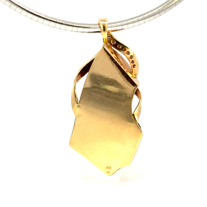 14K Yellow Gold Pendant with Hawaiian Coral & Diamonds- Sculptural One-of-a-Kind Design