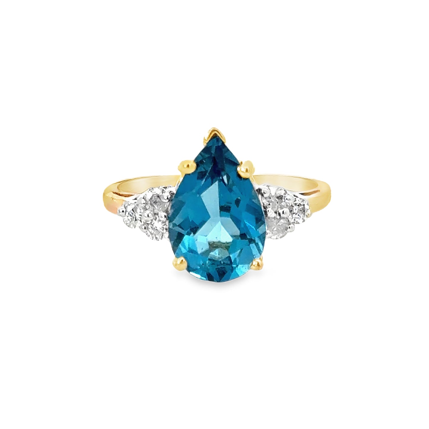 14K Yellow Gold, Pear-Cut Blue Topaz, Diamonds Approx.0.18ct., Size 7 |