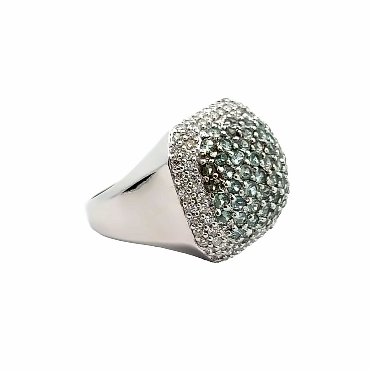 Le Vian 14K White Gold Diamond & Blue-Green Tourmaline Dome Ring