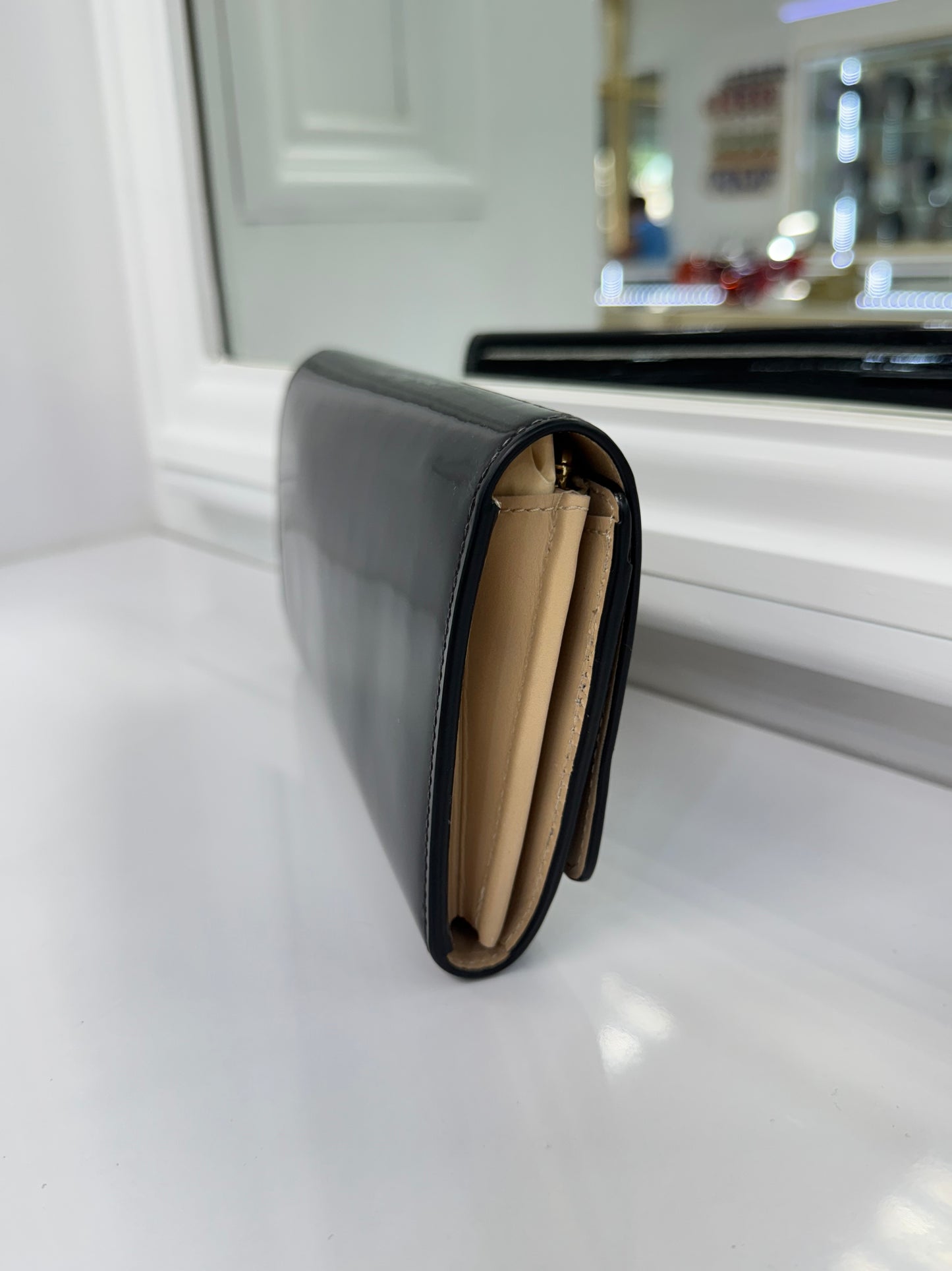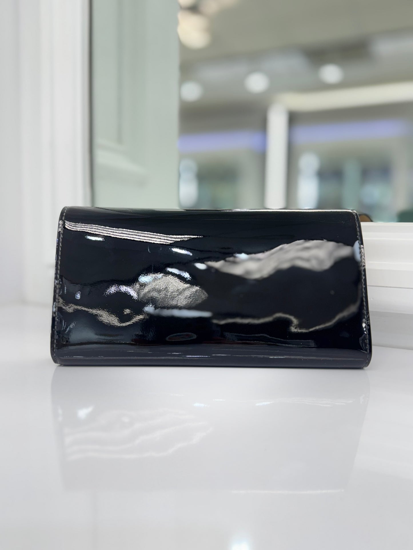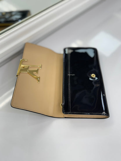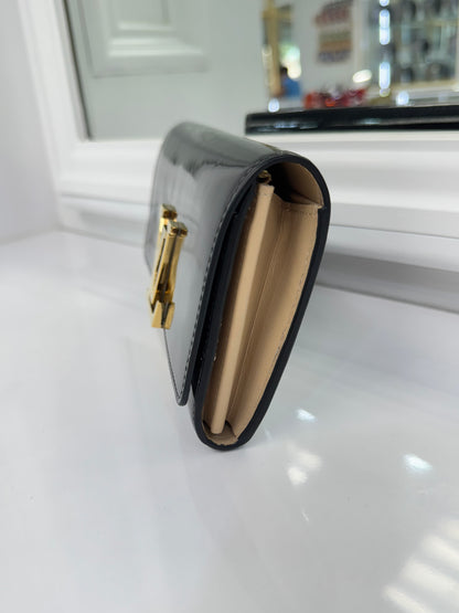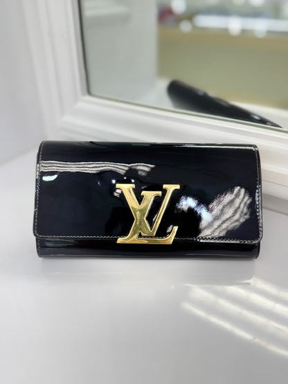 Louis Vuitton Louise Black Vernis Leather Wallet Clutch with Gold LV Clasp