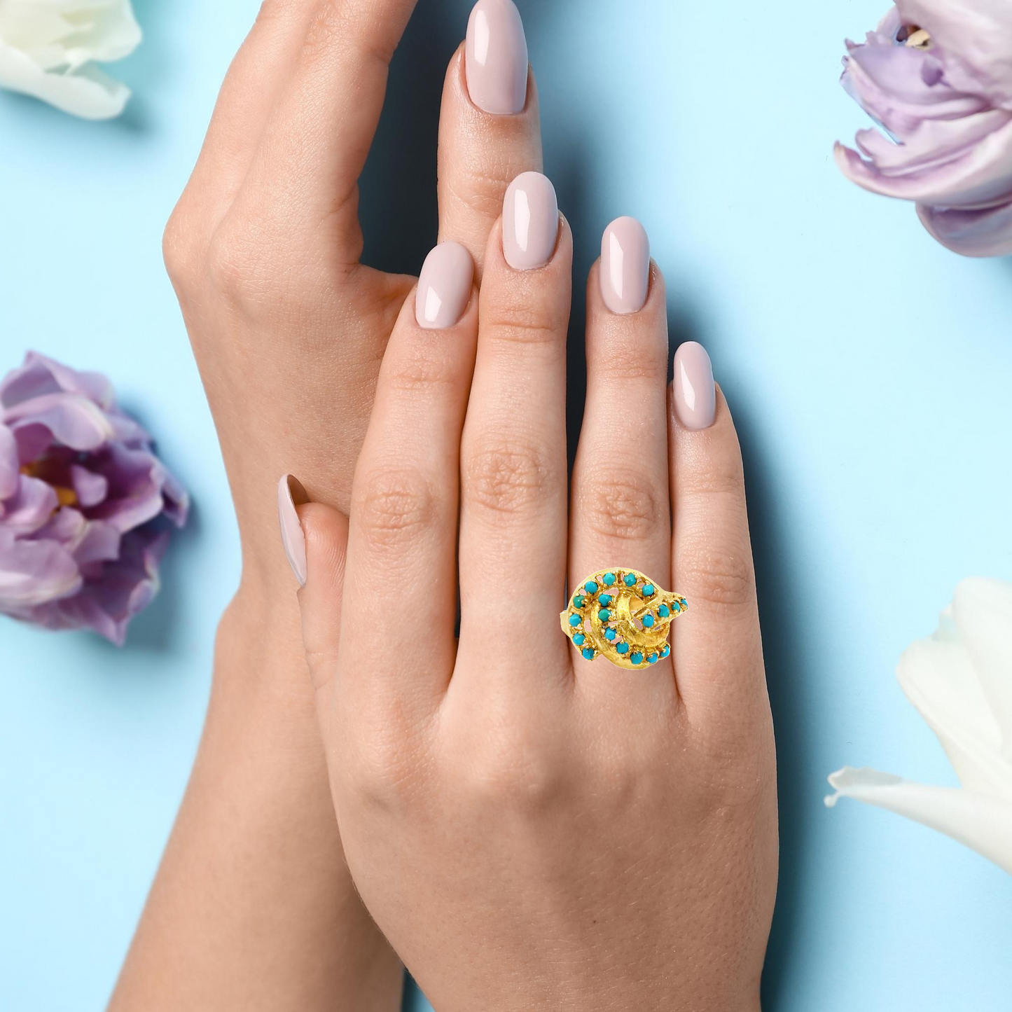 18K Yellow Gold Turquoise Swirl Ring