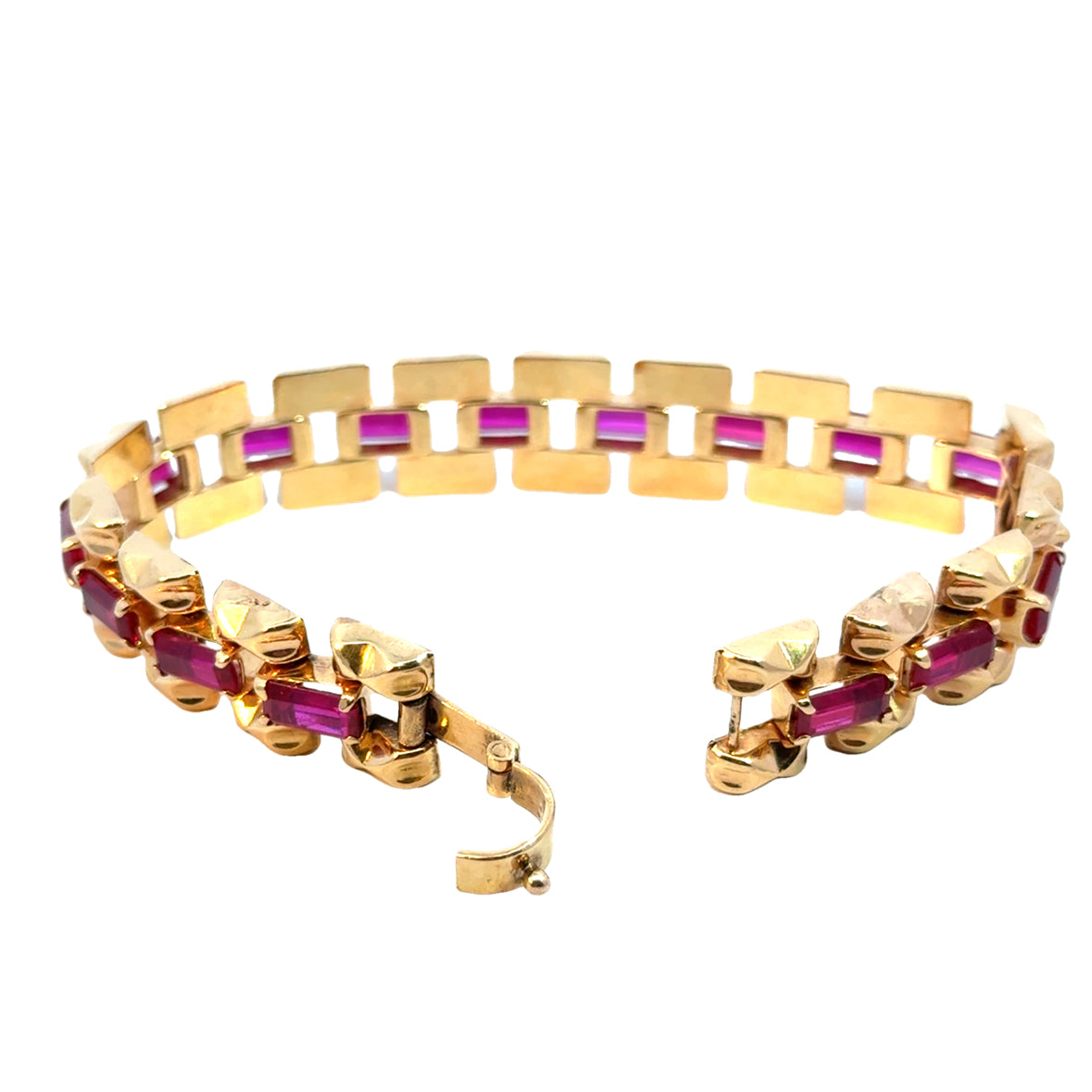 With its bold design and timeless sophistication, this 18k rose gold and ruby bracelet is an exceptional addition to any fine jewelry collection. Whether worn alone or paired with other vintage pieces, it exudes a sense of retro elegance that remains effortlessly chic.