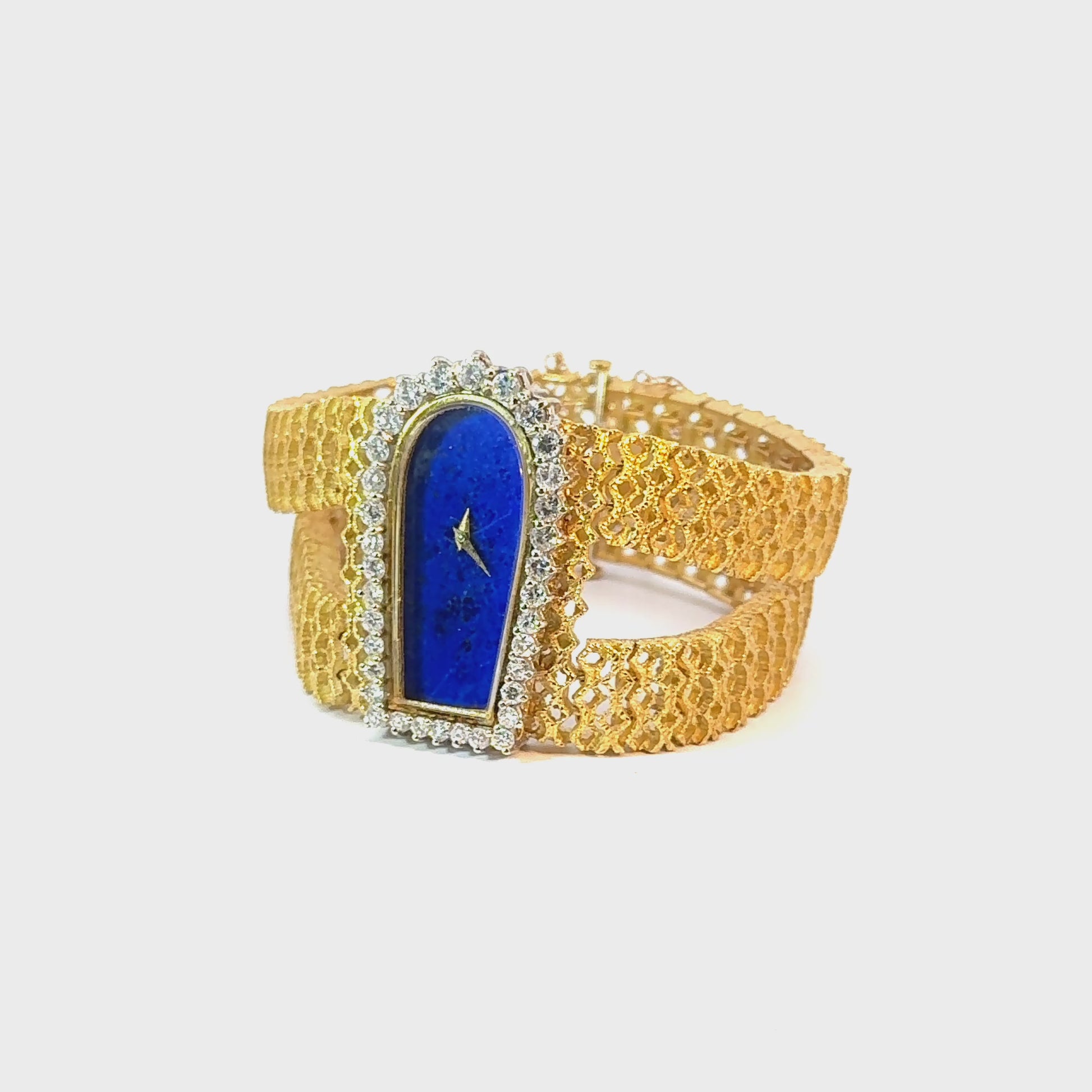 Luxury 18K Gold Bracelet Watch with Lapis Dial & Diamonds - Couture Estate Statement