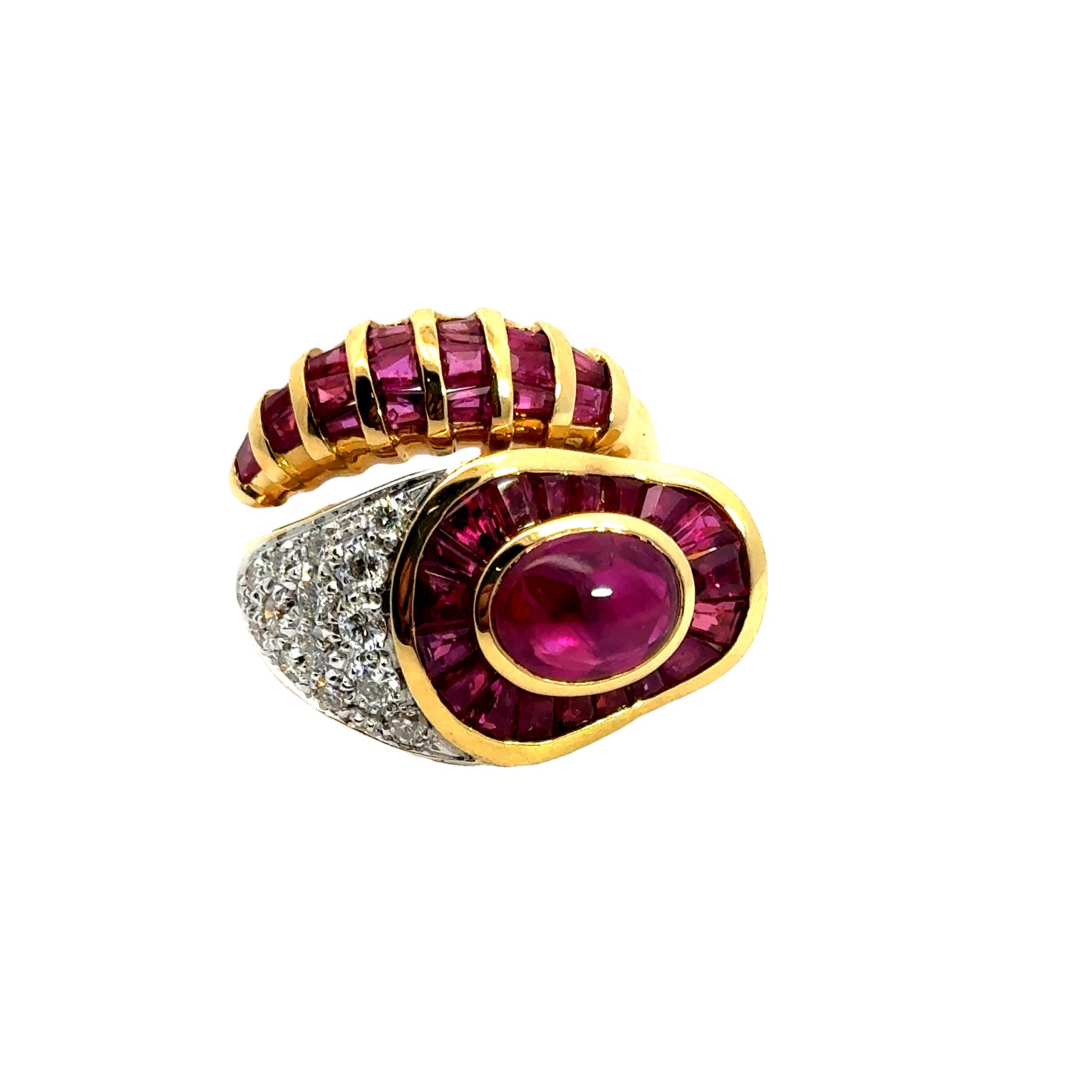 An extraordinary vintage 18K Ruby & Diamond Snake Ring, a captivating true masterpiece. This rare and distinctive piece embraces an artistic and enigmatic design, and an unparalleled level of craftmanship.