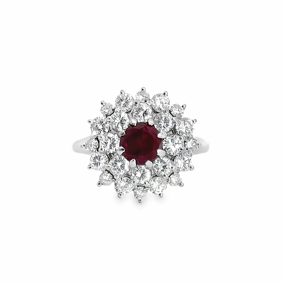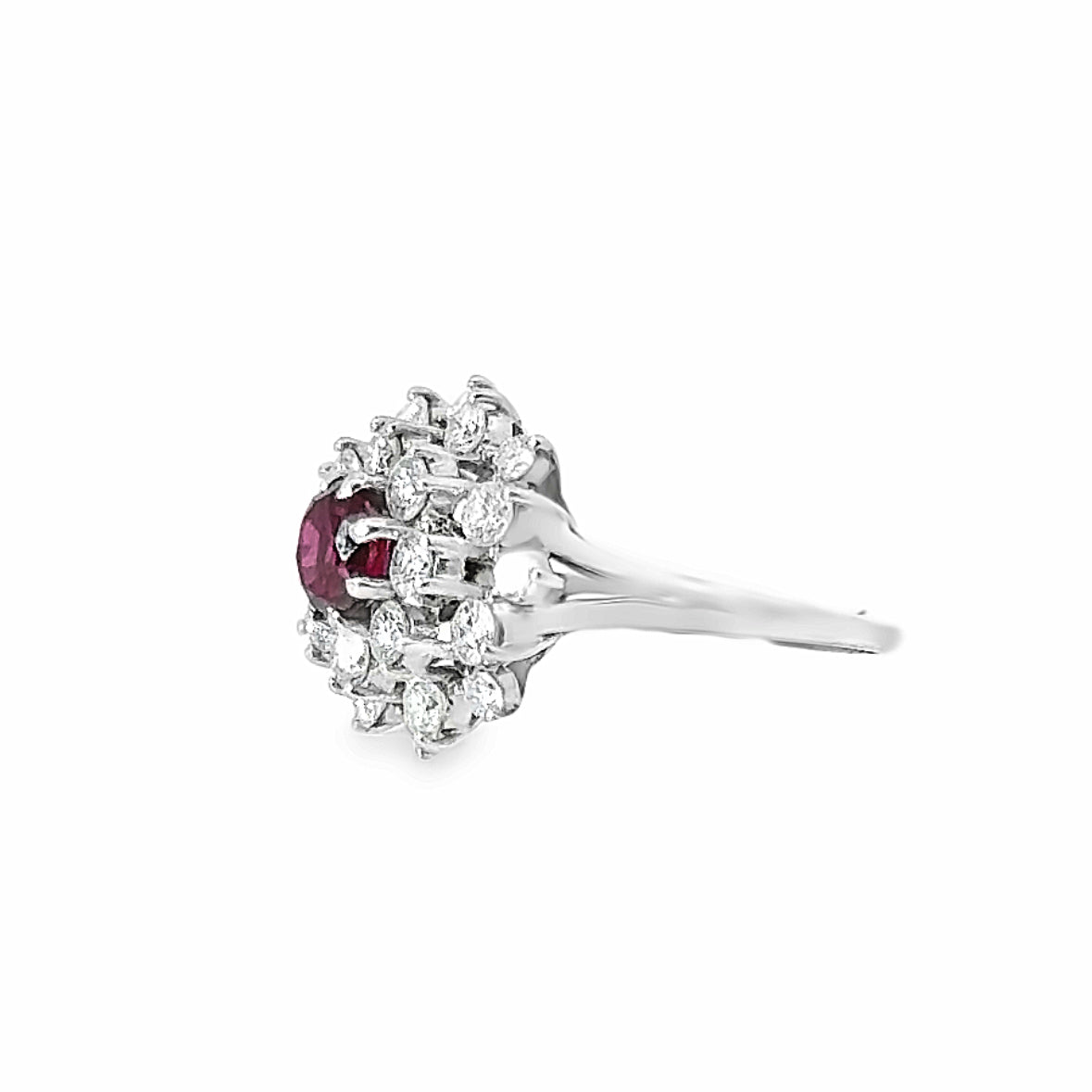 18K White Gold Ruby & Diamond Cluster Dome Ring