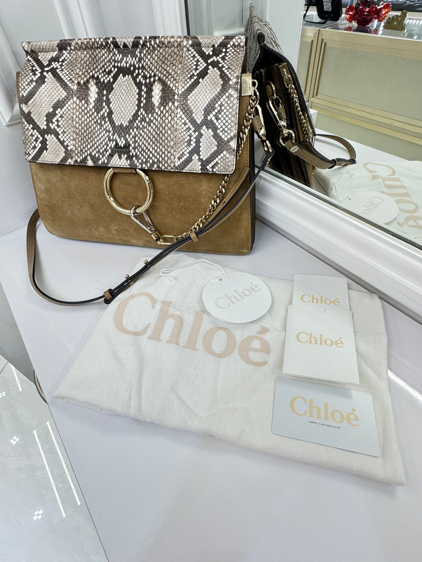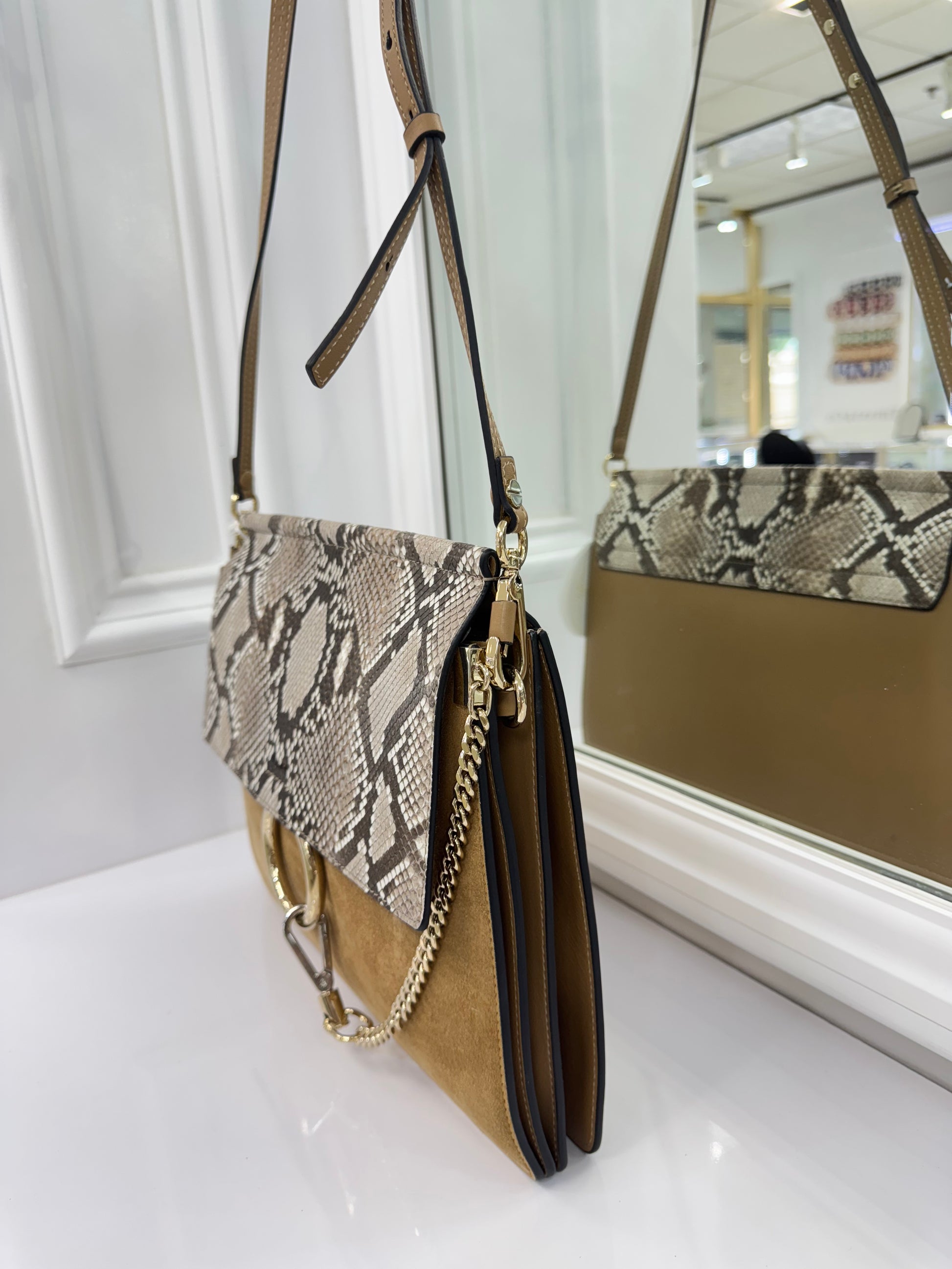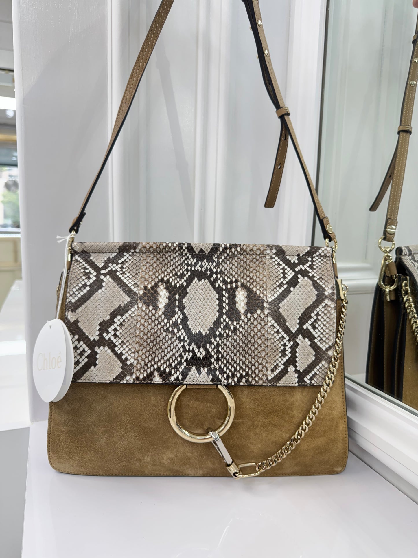 Chloé Faye Medium Shoulder Bag in Python & Calfskin Suede – New with Tags