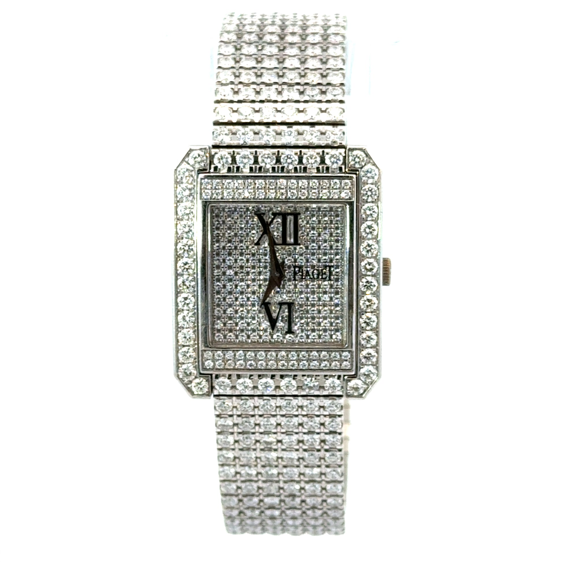Piaget, 18K White Gold Approx.470 diamonds on bracelet, clasp, and case alone Swiss Made |