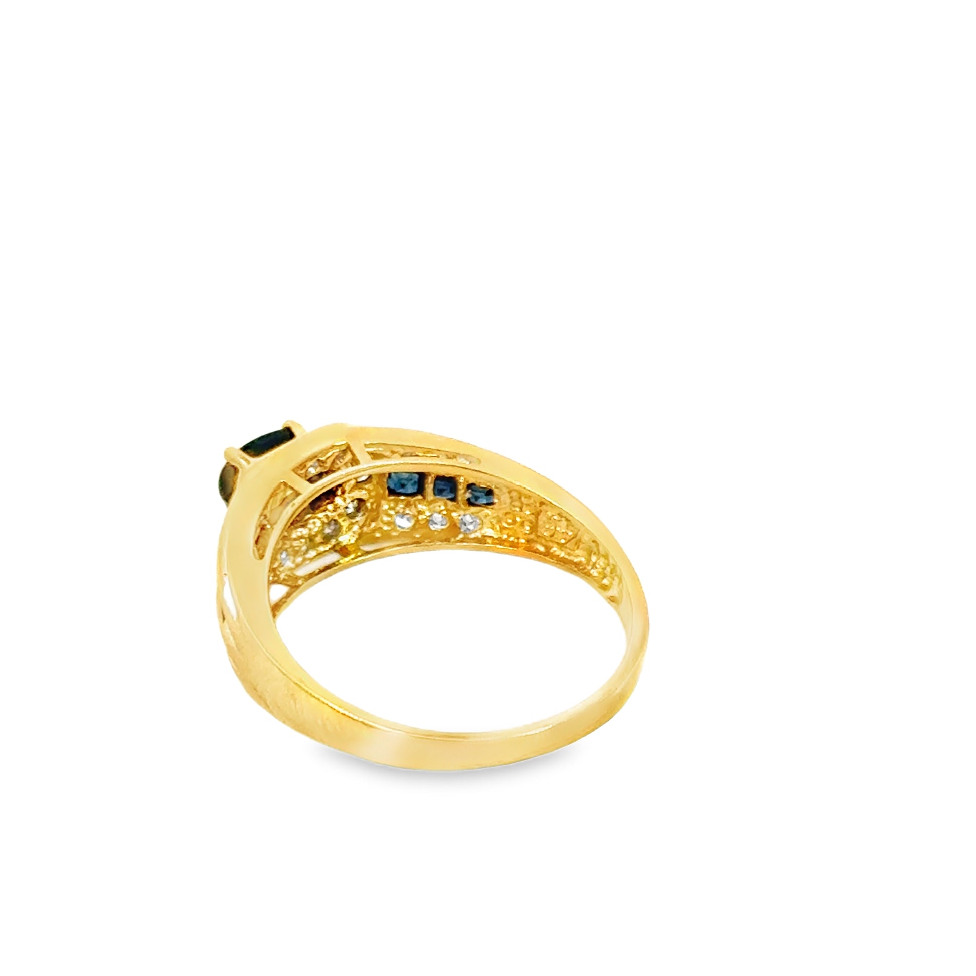 14K Yellow Gold Sapphire & Diamond Belt Design Ring