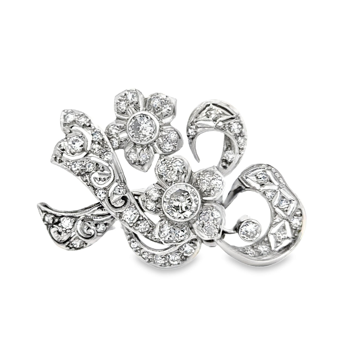Beautiful Platinum & Diamond Flowers & Ribbons Brooch