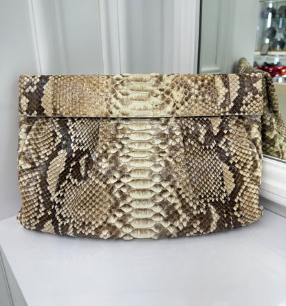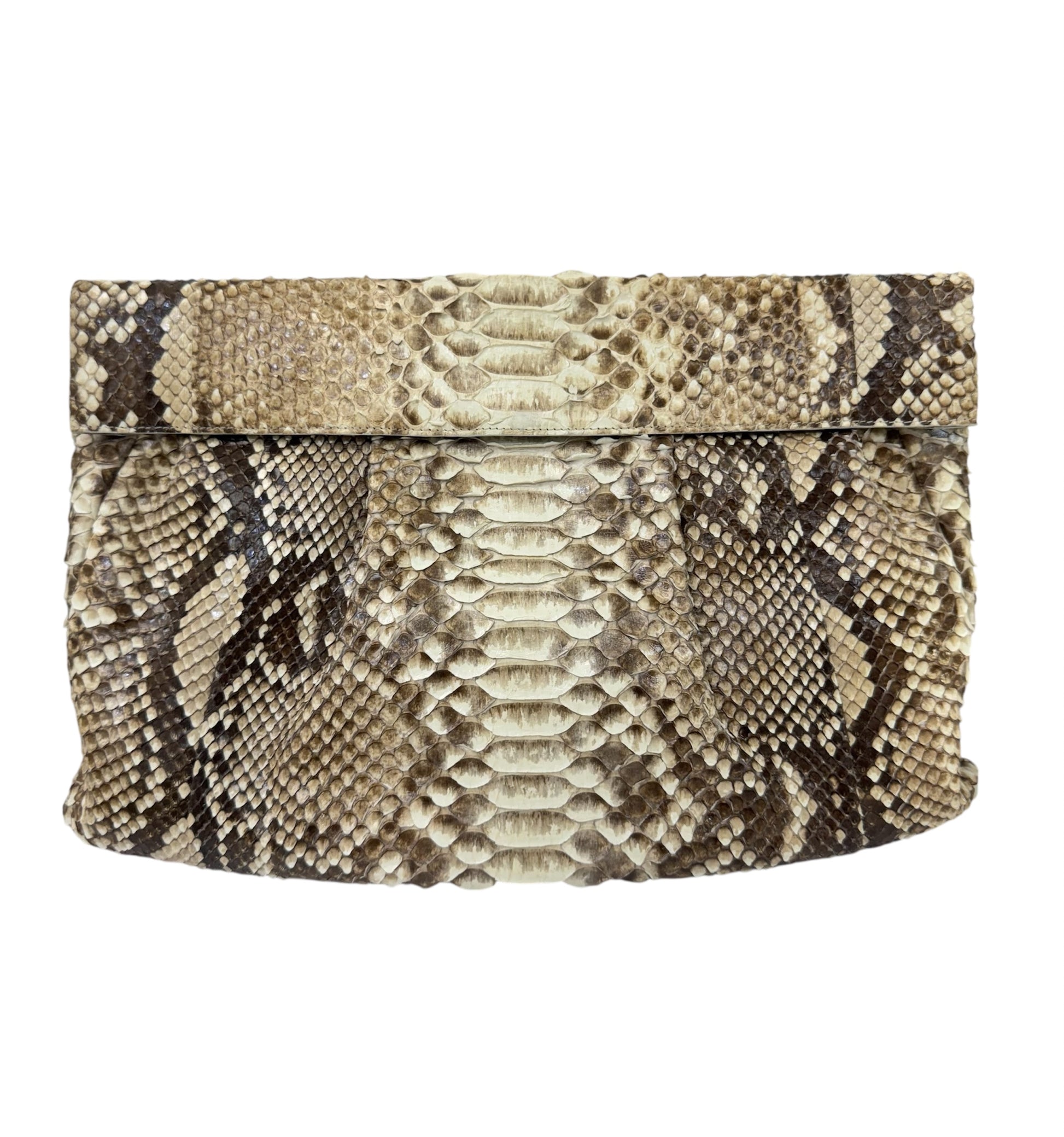 Nancy Gonzalez Natural Python Fold-Over Clutch