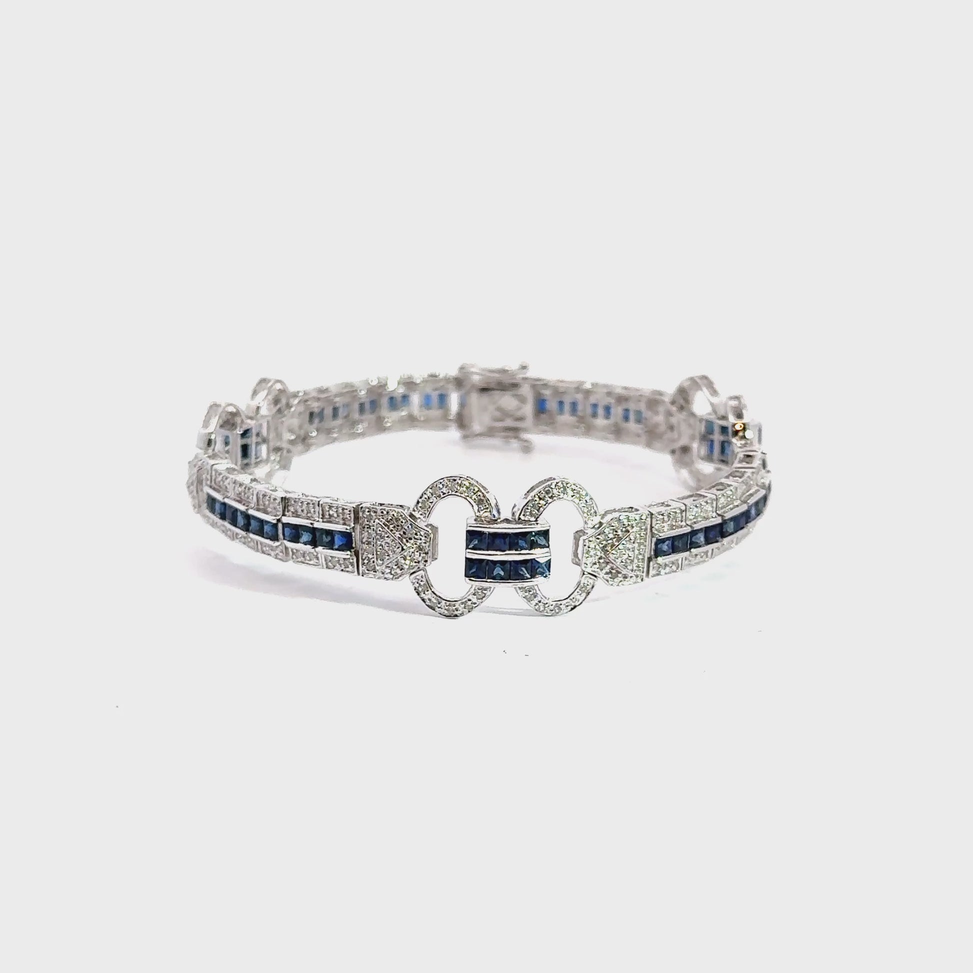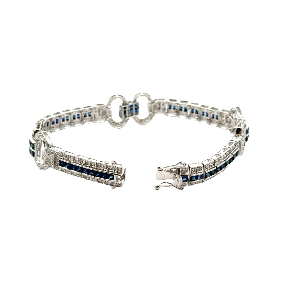 A perfect blend of classic charm and modern refinement, this sapphire and diamond bracelet in 14k white gold is a breathtaking addition to any fine jewelry collection, exuding grace, luxury, and timeless appeal.