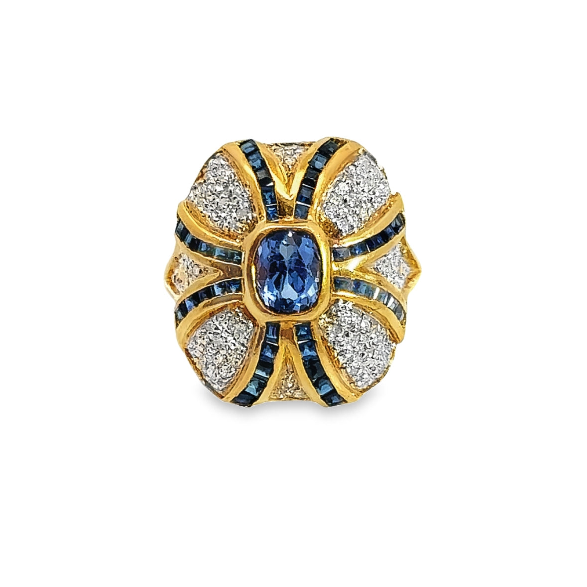 Retro 18K Yellow Gold Sapphire & Diamond Cocktail Ring