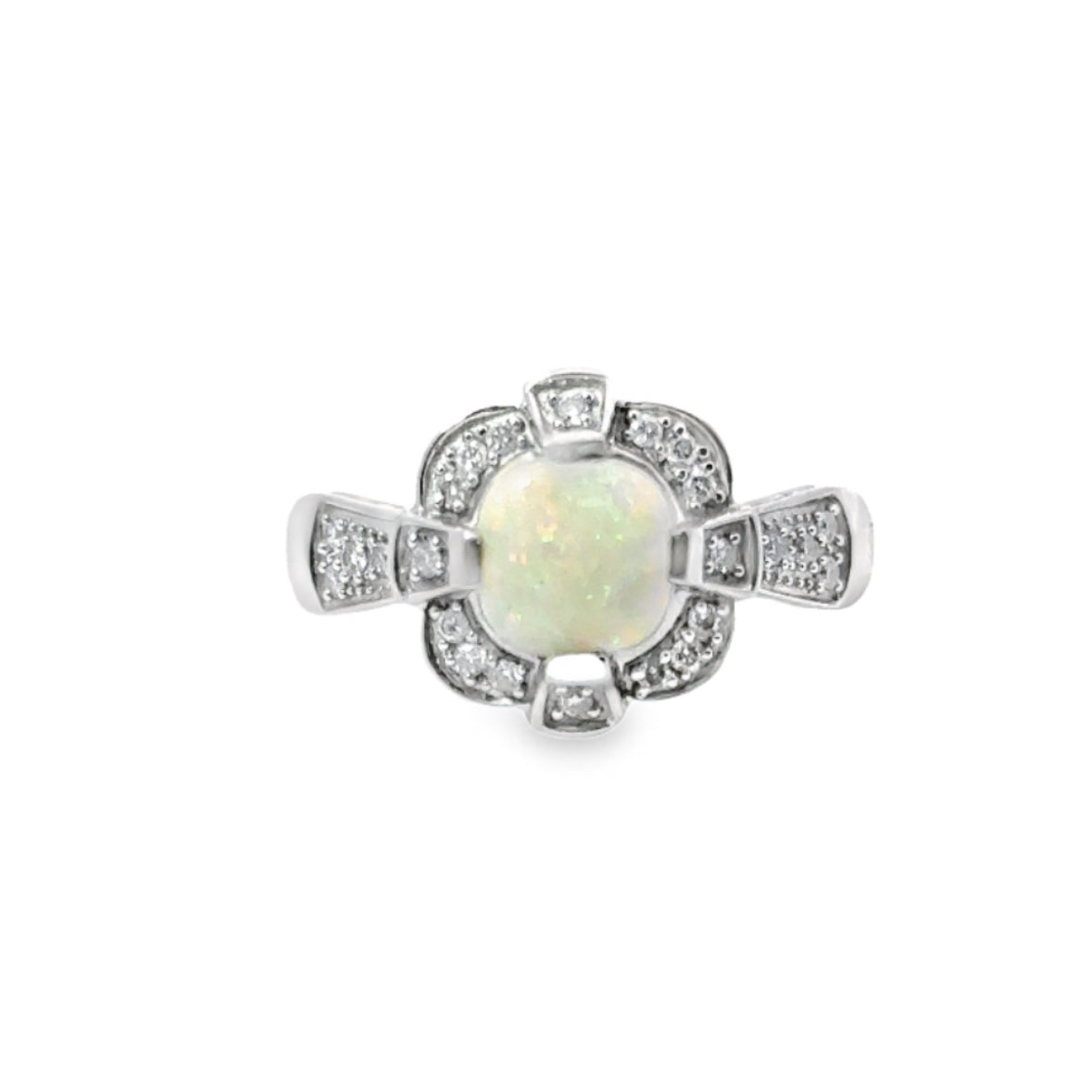 | 10K White Gold, Cushion-Cut Opal, Accent Diamonds Approx. 0.49ct., Size 8 |