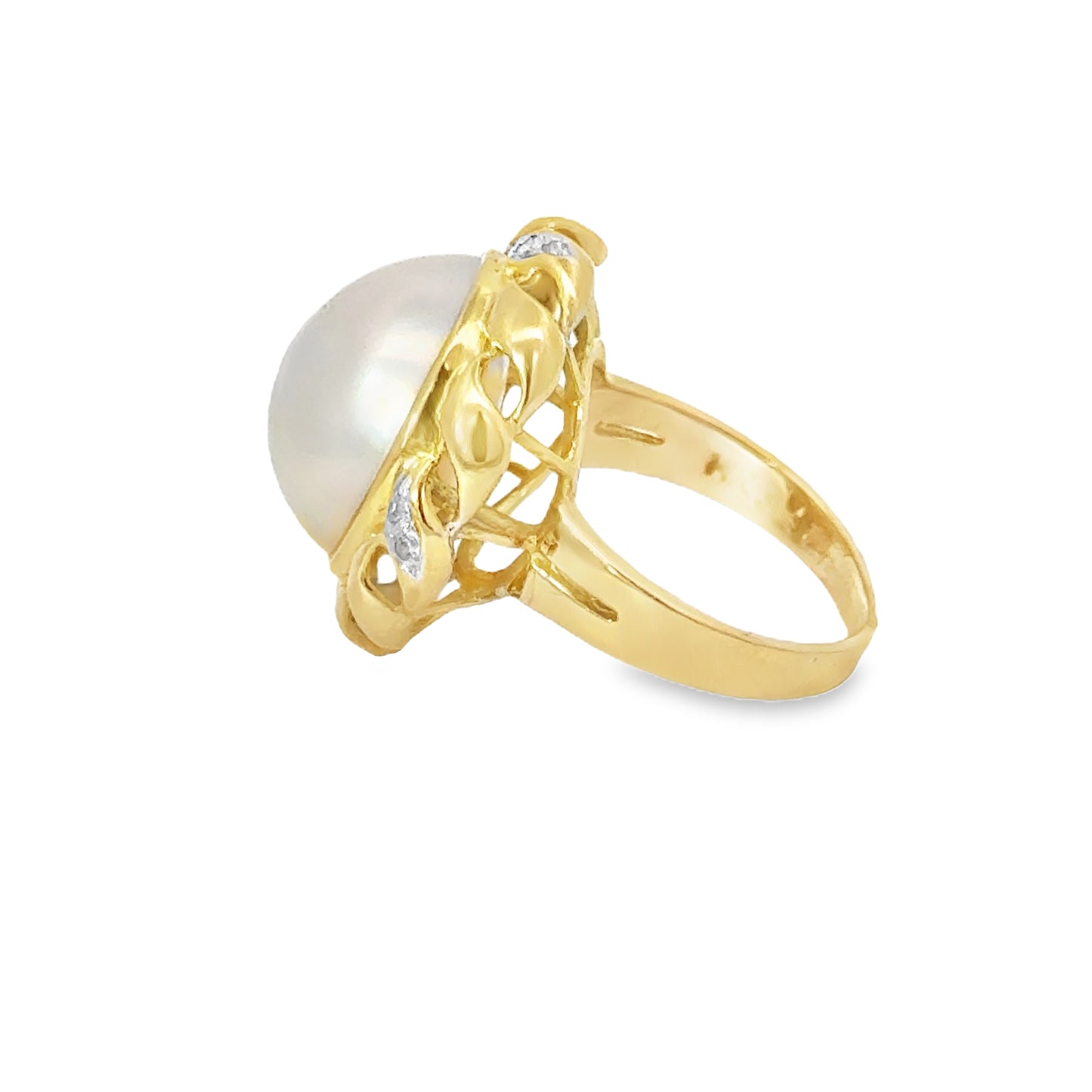 14K Yellow Gold, 15mm Pearl, Diamonds Approx.0.04ct., Size 4.5 * Matching earrings available separately |