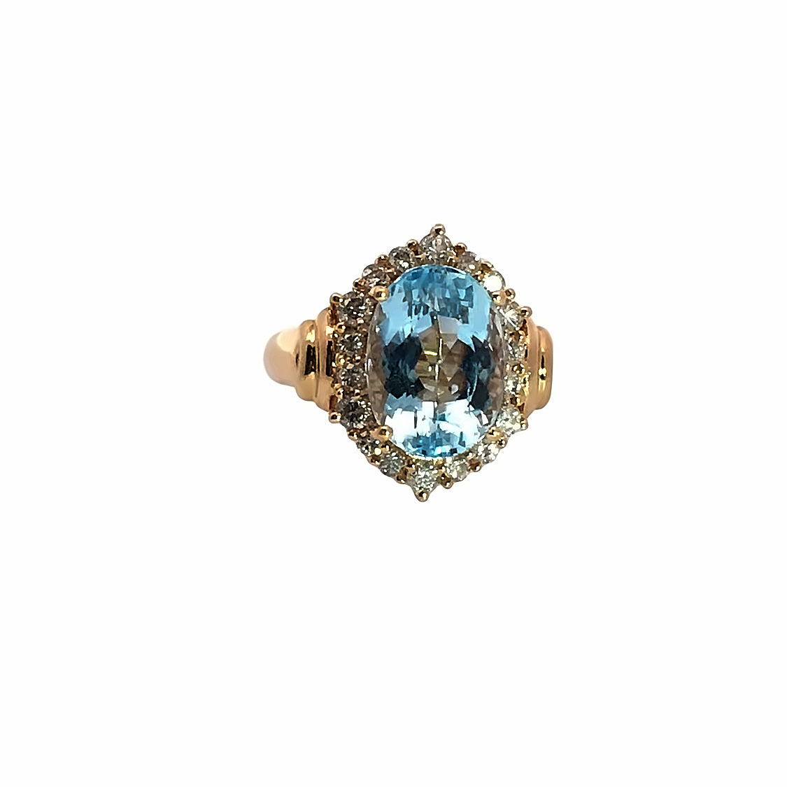Stunning 14K Oval Cut Blue Aquamarine and Diamond Ring