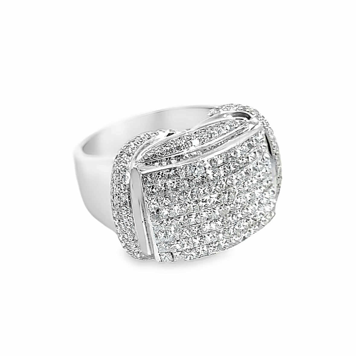 | 14K, White Gold, Princess and Melee Cut Diamonds Approx. 5.84 ct., VS/G, Size 10.5 |