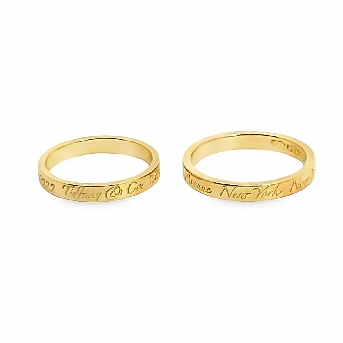 Tiffany & Co., 18K Yellow Gold, Engraved: Fifth Avenue New York, Size 5.5, matching men’s band available in size 7 |