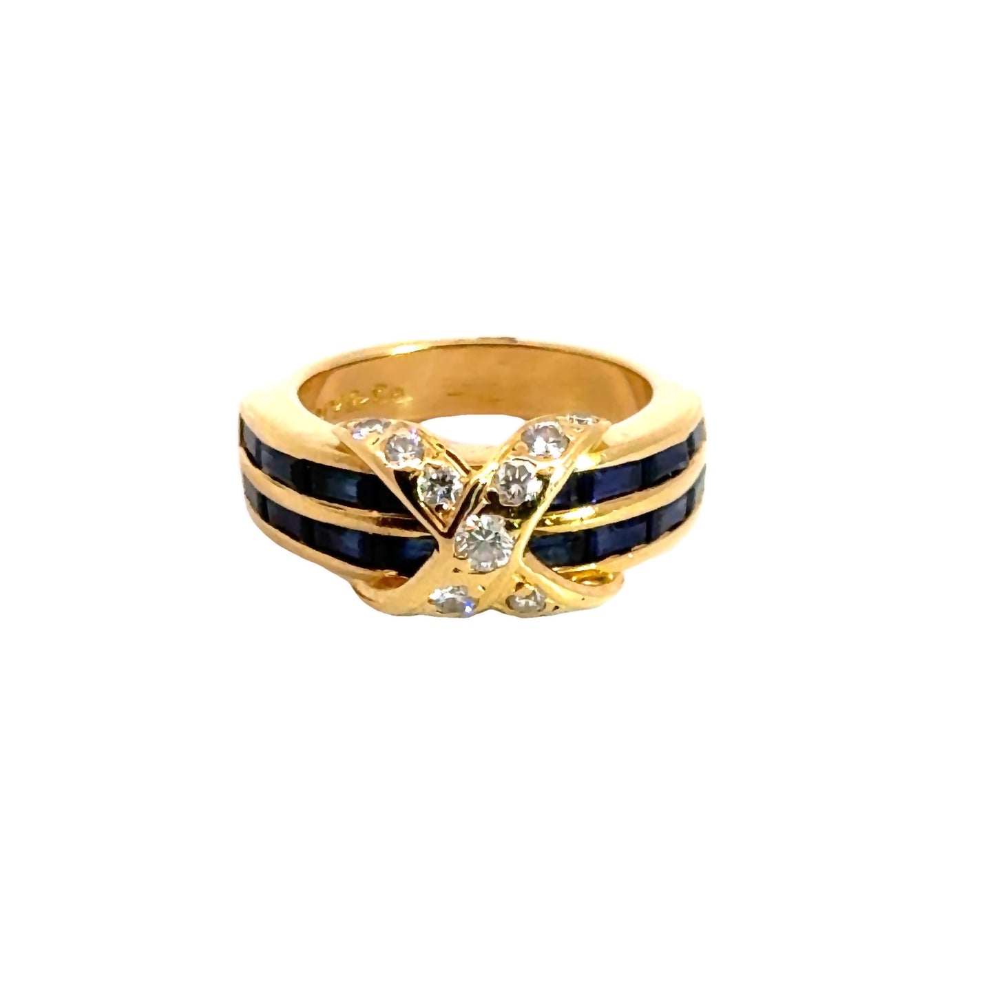 Tiffany & Co. 18K Yellow Gold Sapphire & Diamond X Ring