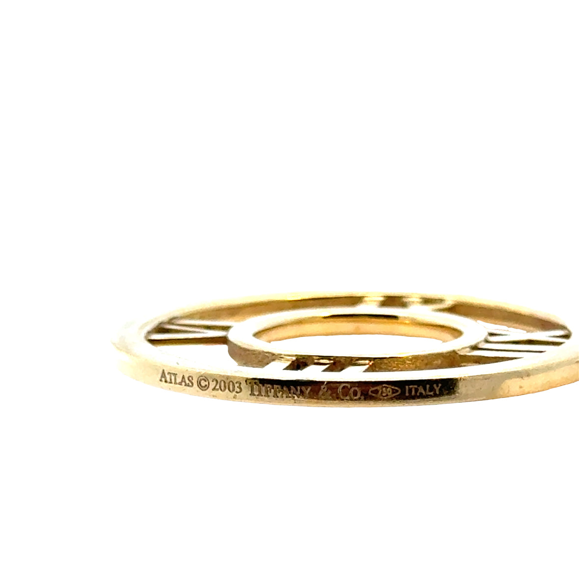 A signature design from Tiffany & Co.’s celebrated Atlas Collection, this striking pendant features the iconic Roman numerals inspired by the monumental Atlas clock above the Fifth Avenue flagship. Crafted in luminous 18K yellow gold, the openwork circular design is both bold and airy, offering a modern elegance that layers beautifully or stands alone as a statement piece.
