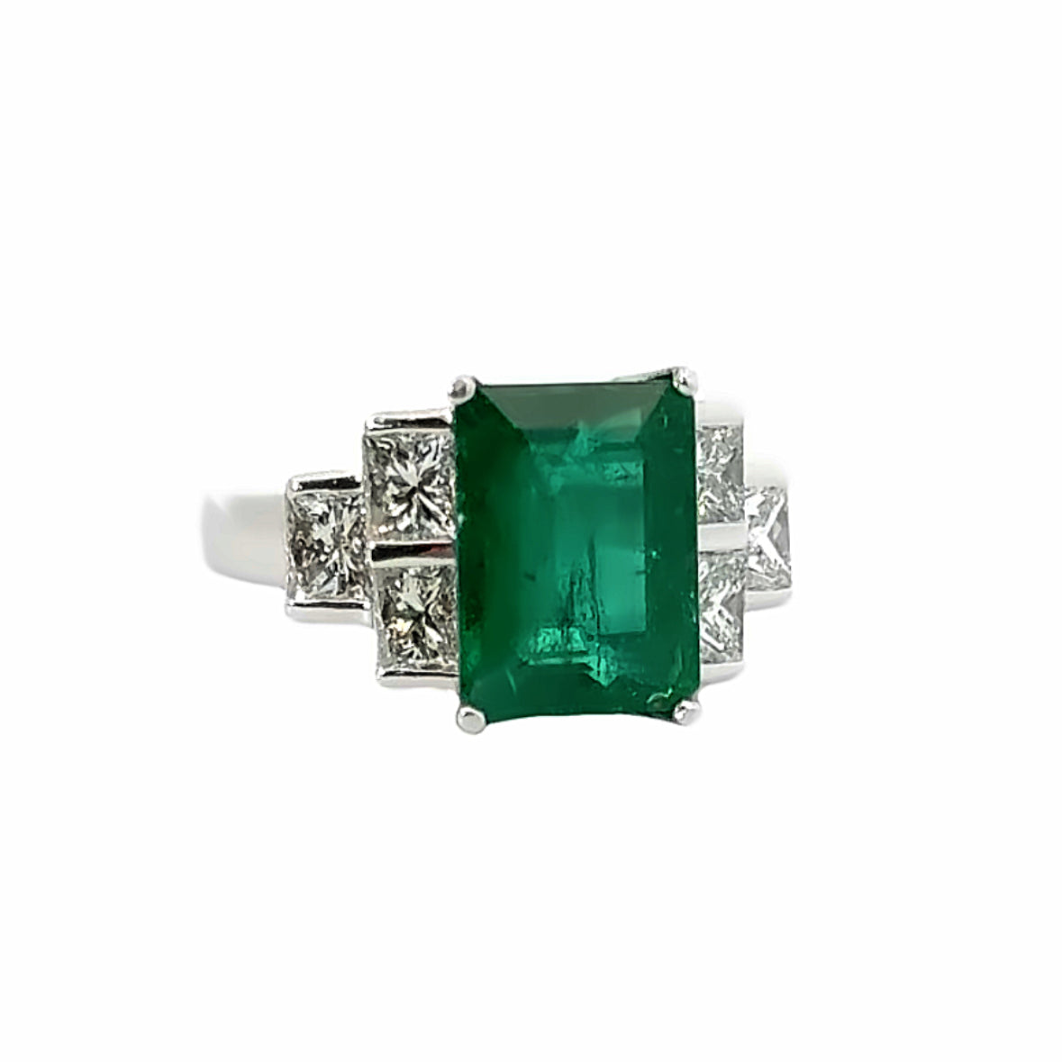 Platinum, Emerald 4.30ct., Princess-Cut Diamonds 3.0 ct., Size 5 |