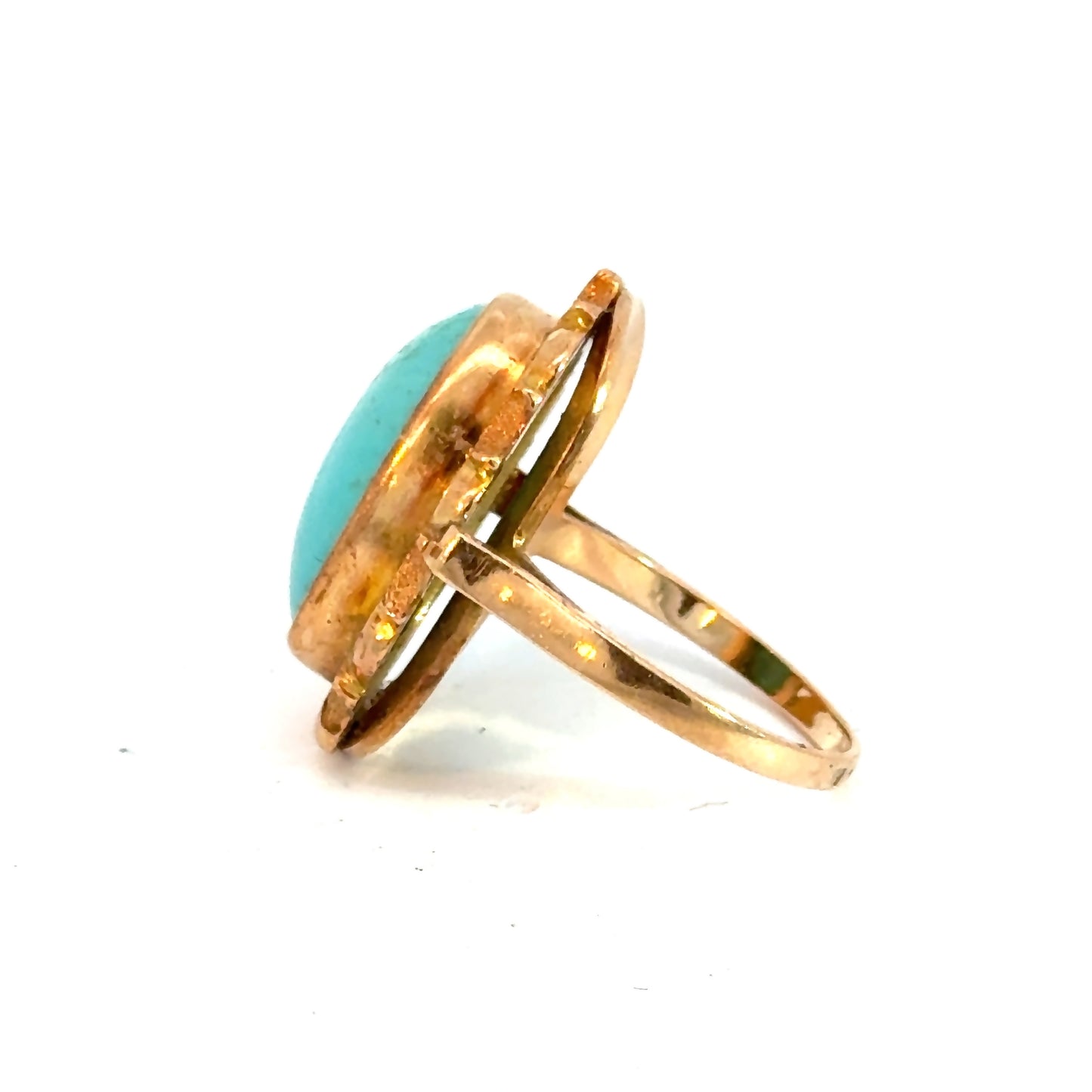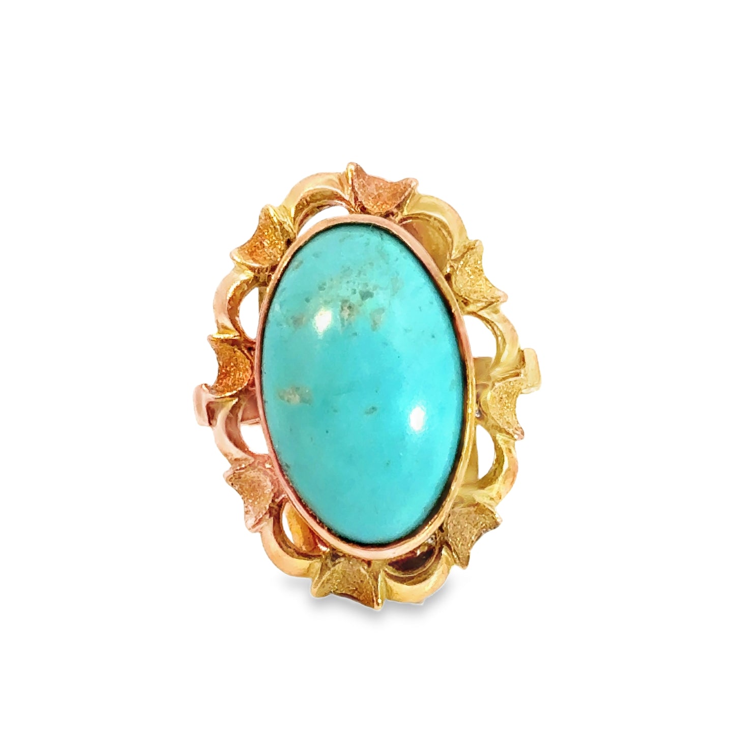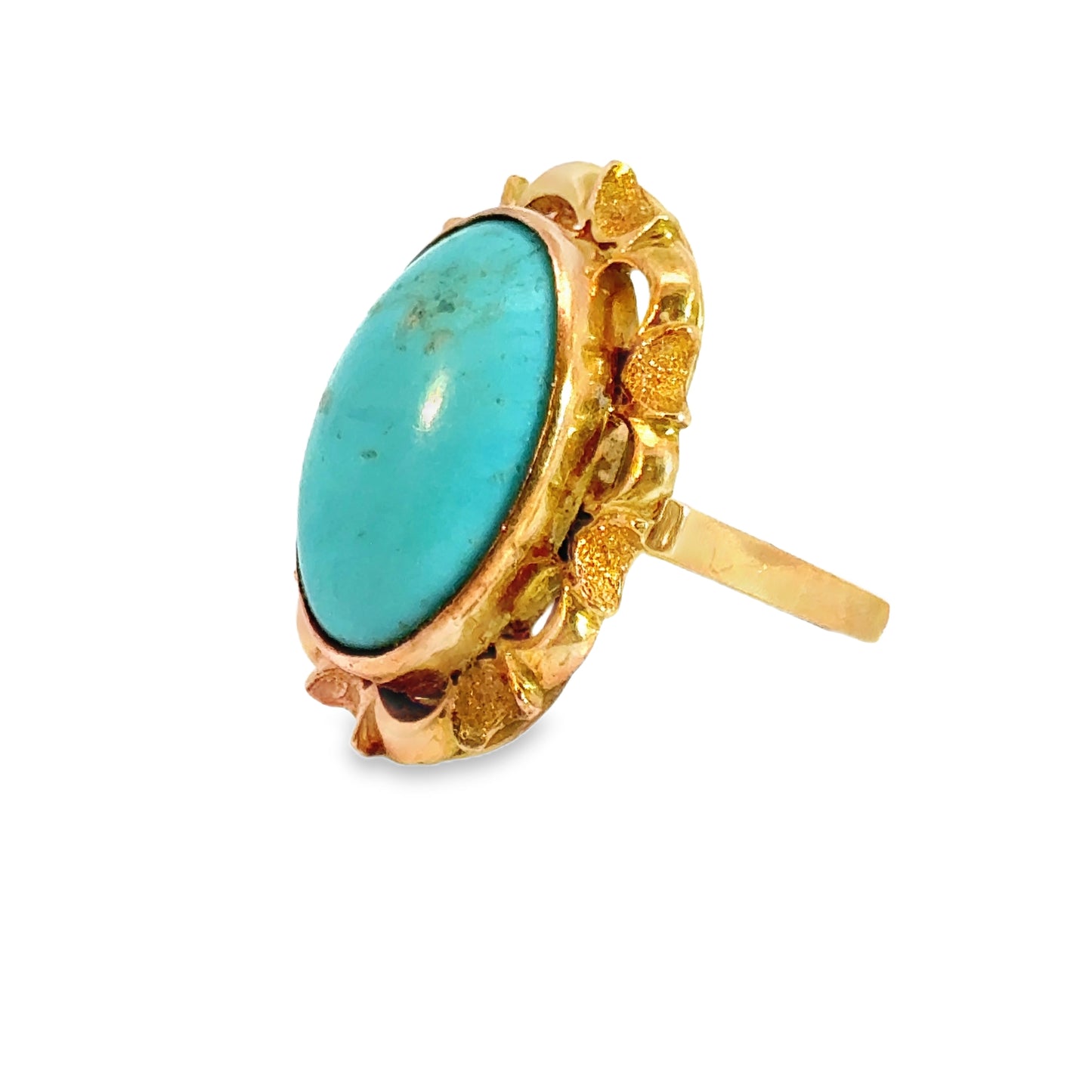 14K Yellow Gold, Oval-Cut Turquoise, 1940’s, Antique, Size 8 |