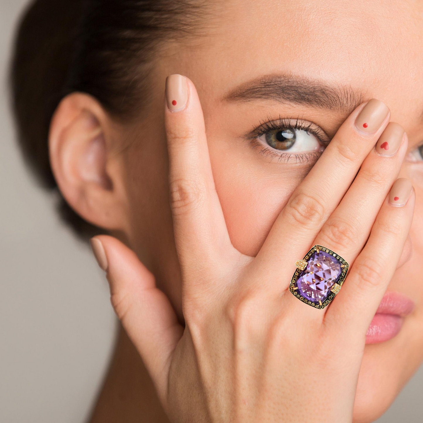 Vibrant 14K Rose Gold Amethyst & Diamond Ring