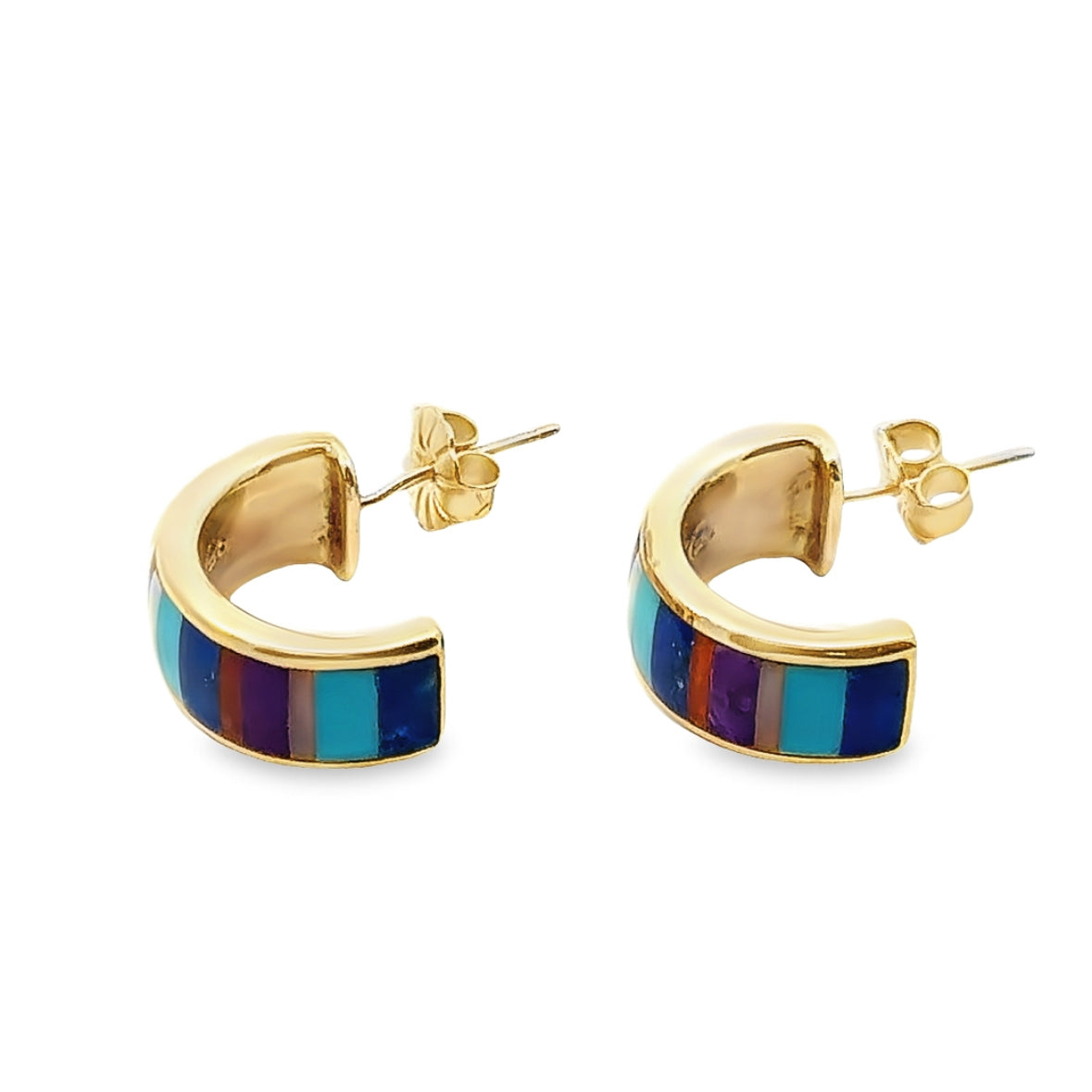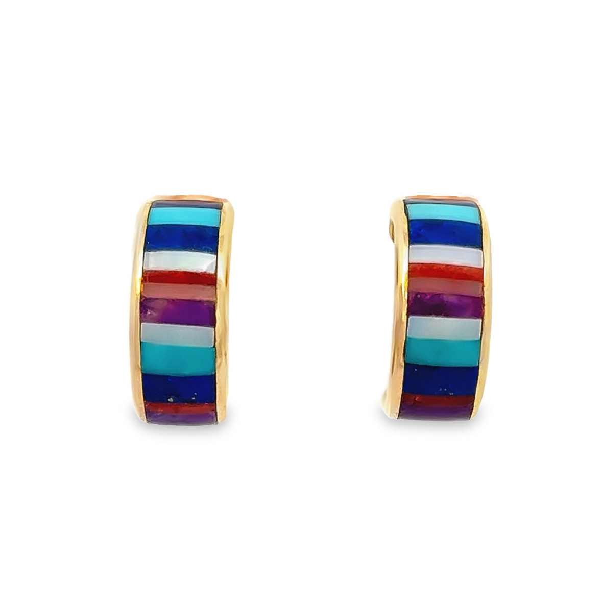 Colorful Enamel 14K Yellow Gold Small Half-Hoop Earrings