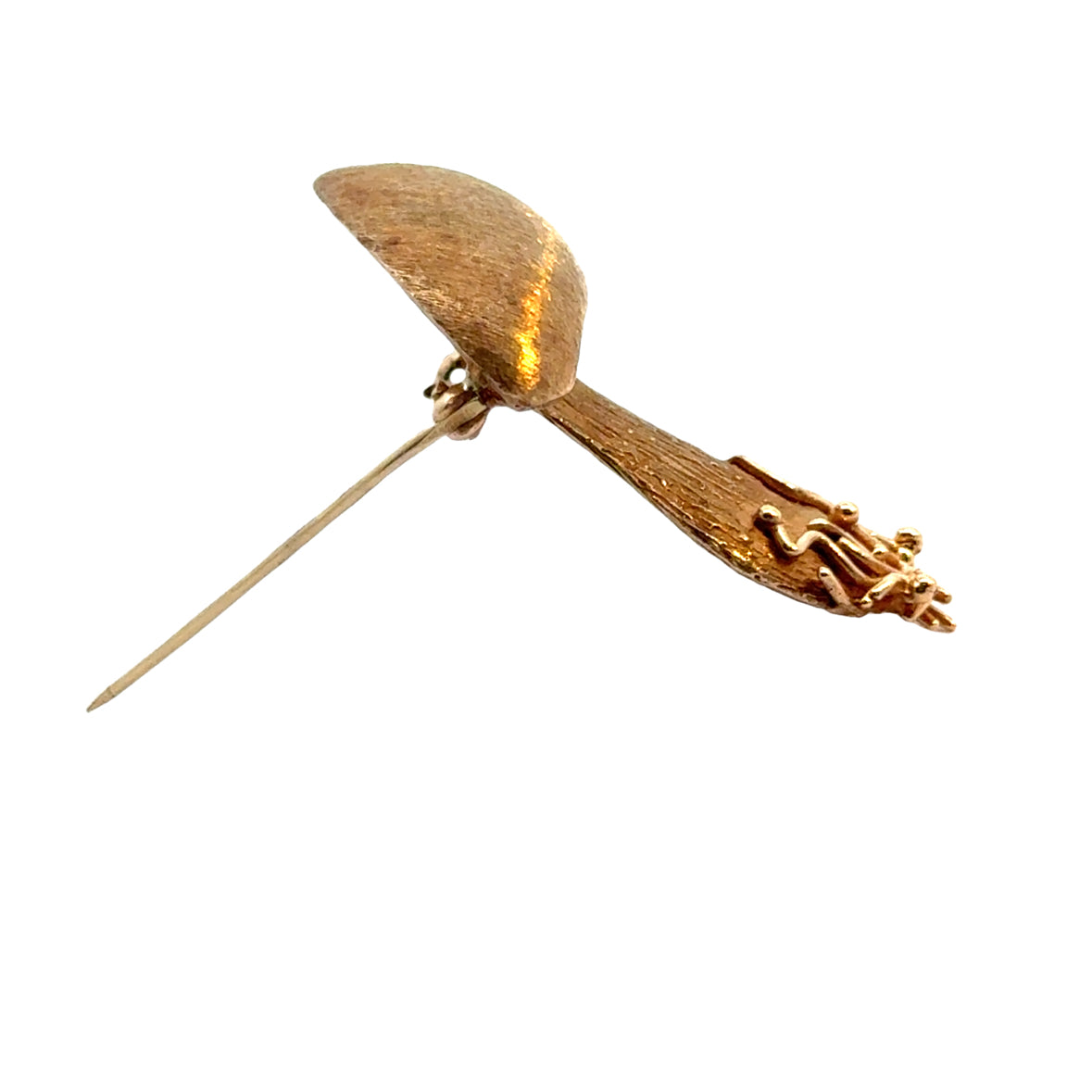 14K Yellow Gold Whimsical Mushroom Brooch