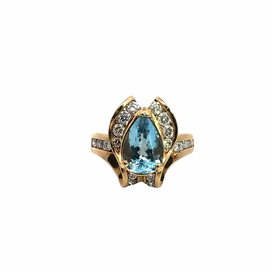 14K, Yellow Gold, Pear Shape Cut Aquamarine, 1.10ct. Diamonds, Size 6.75 |