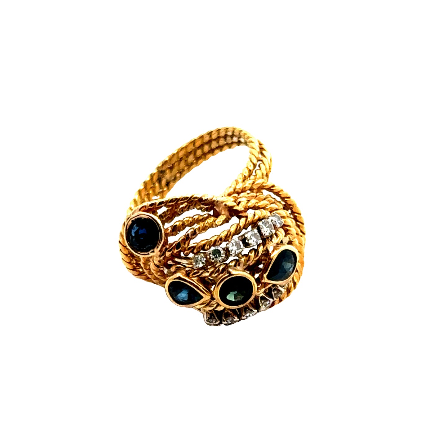 Unique Vintage 18K Yellow Gold Sapphire & Diamond Cocktail Ring