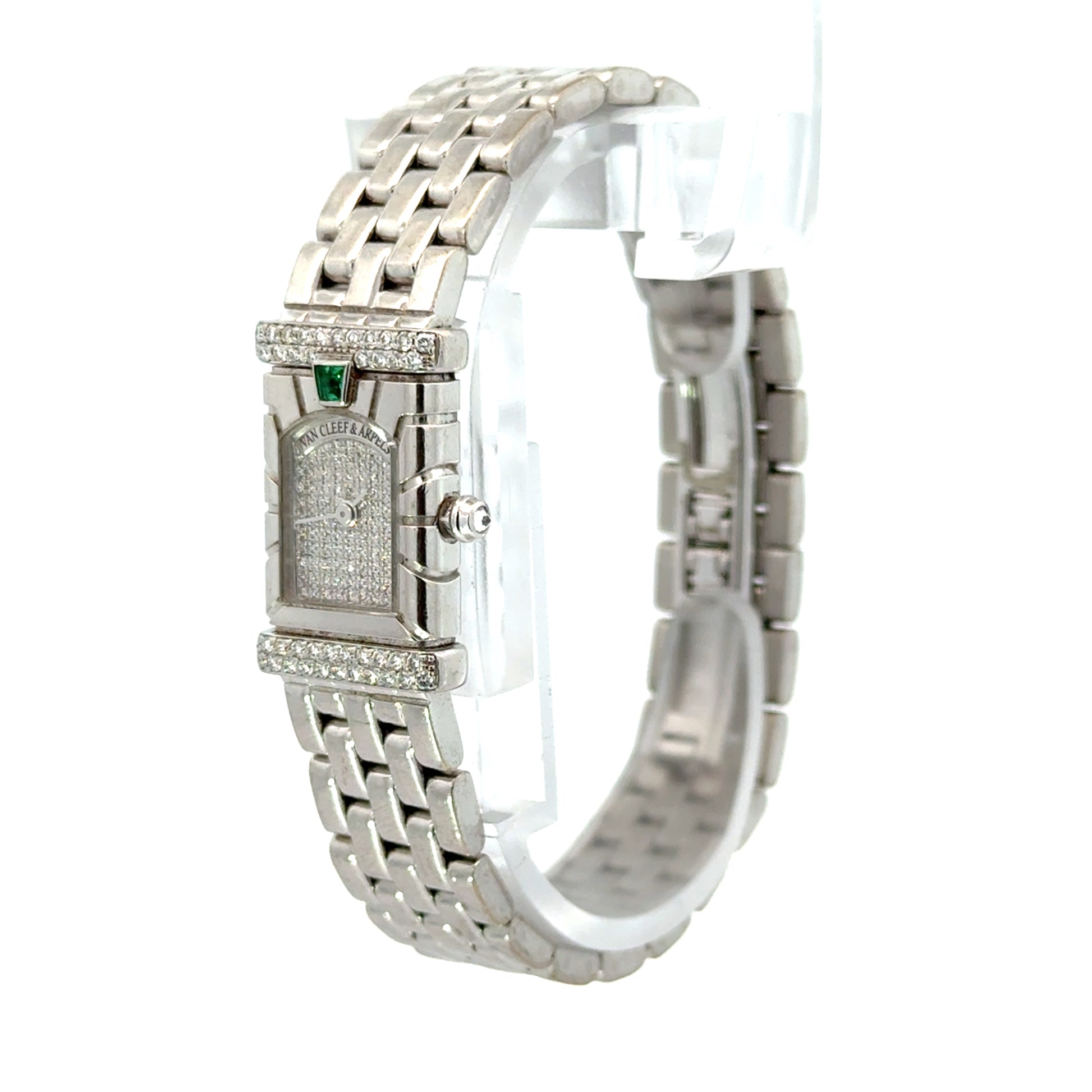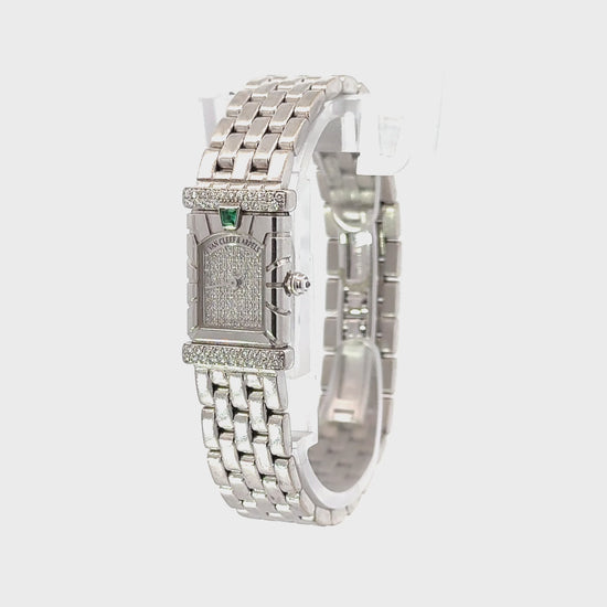 Van Cleef & Arpels Diamond & Emerald 18K White Gold Bracelet Watch