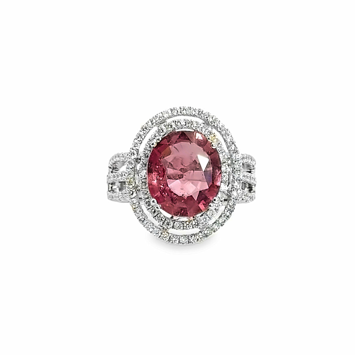 | 18K White Gold, Oval-Cut Pink Tourmaline Center Stone Approx.3.44ct., Diamonds Approx.0.88ct., Size 7.5 |