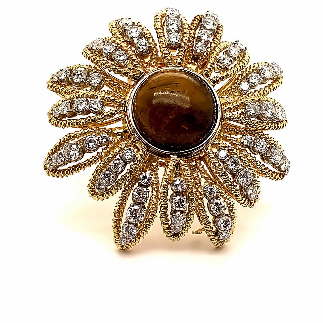 Vintage 18K Tiger's Eye and Diamond Starburst Brooch