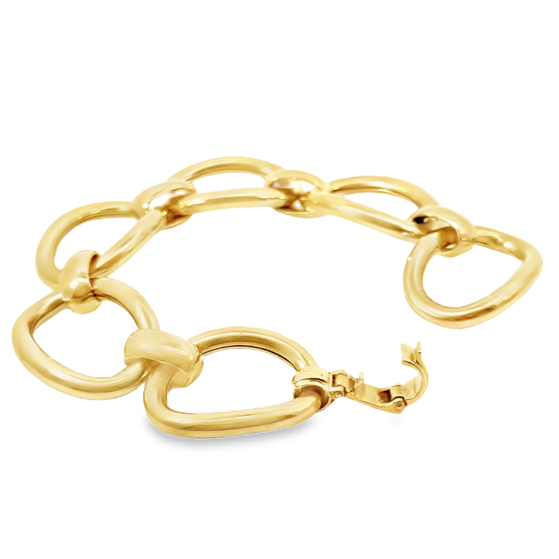The high-polish finish enhances the rich, warm glow of the yellow gold, creating a luxurious and sophisticated look. The oversized links add an element of contemporary style, making this bracelet a perfect accessory for both casual and formal occasions.