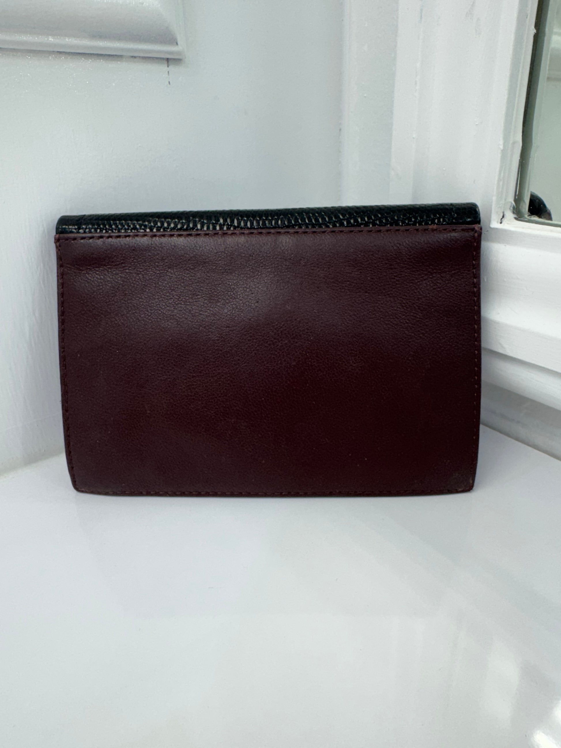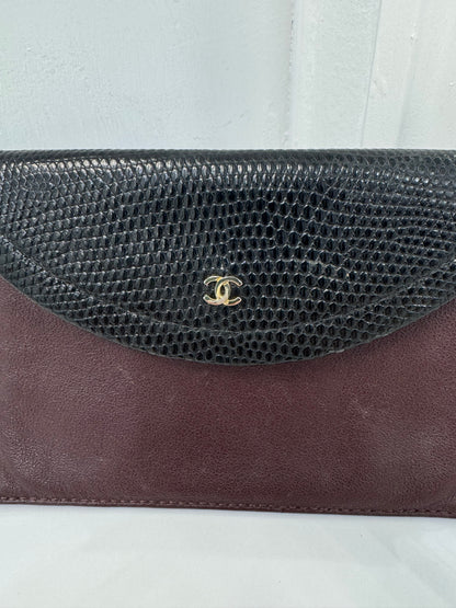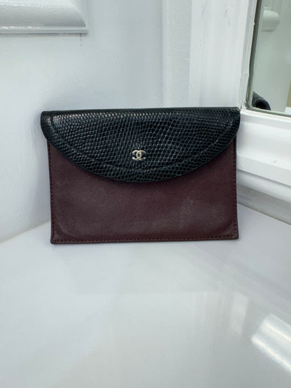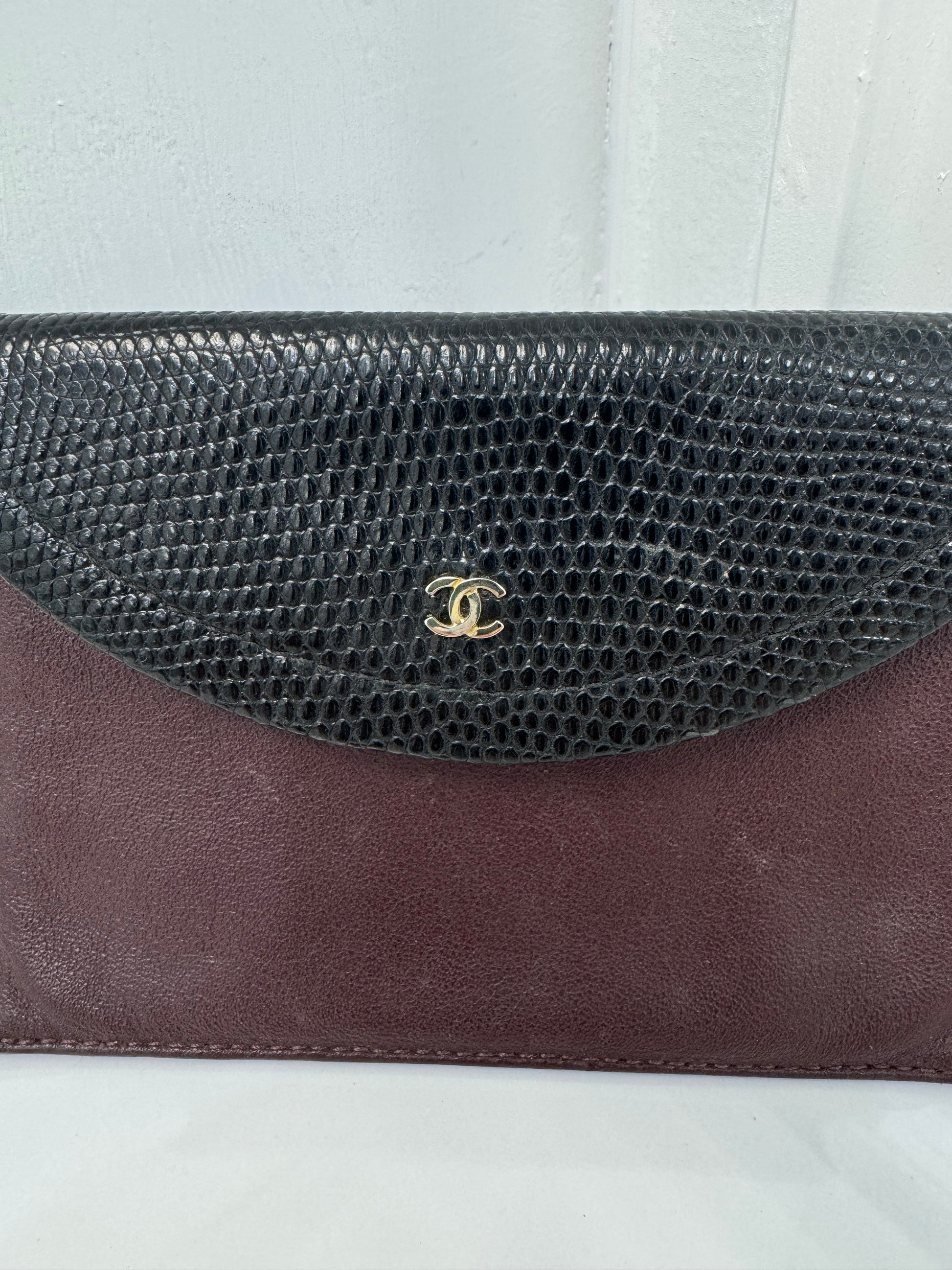 Vintage Chanel Lizard & Leather Envelope Wallet – Burgundy & Black