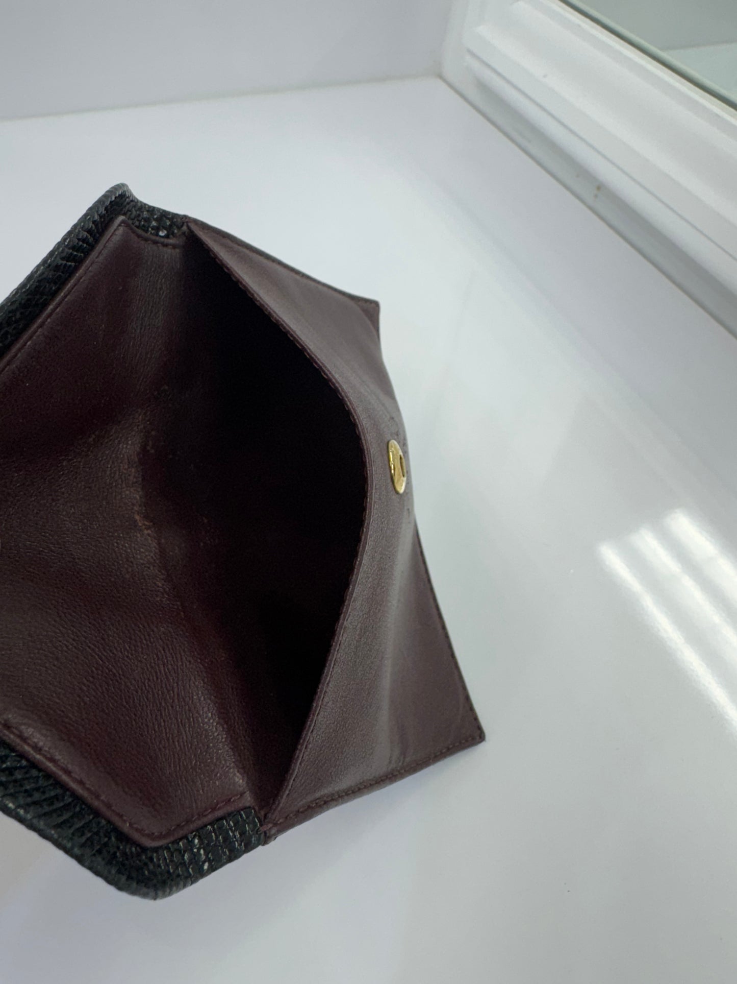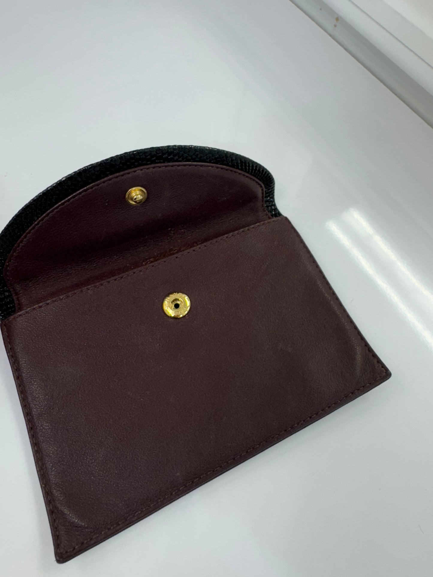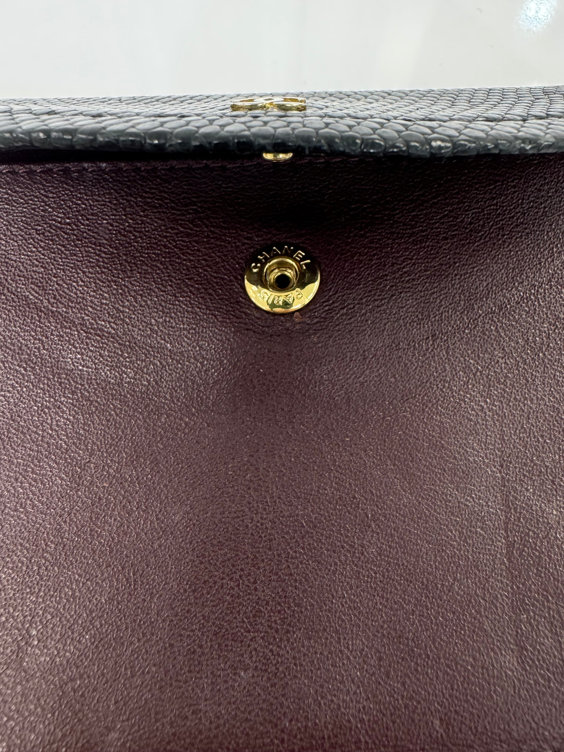 Vintage Chanel Lizard & Leather Envelope Wallet – Burgundy & Black