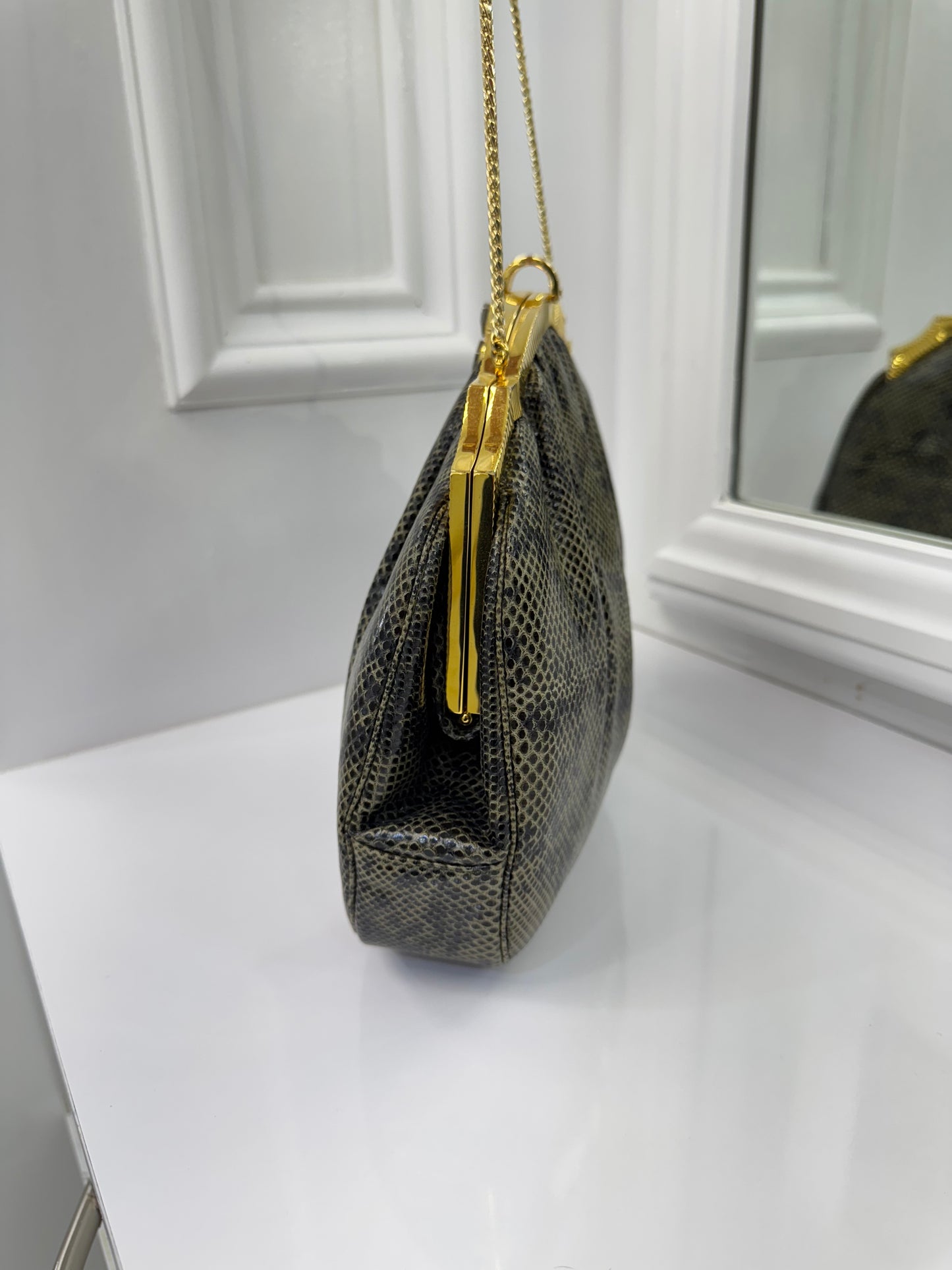 - Material: Snakeskin-style leather (exotic embossed finish)
